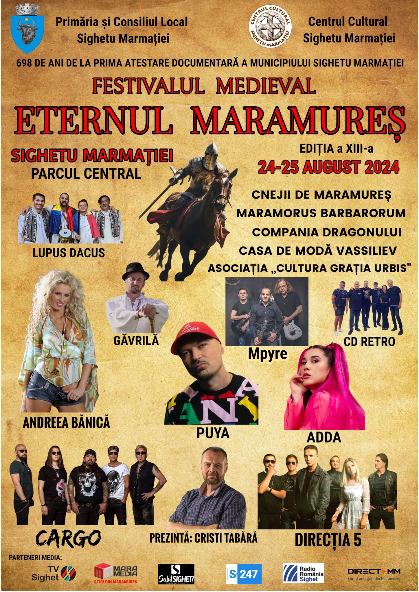 În perioada 24-25 august, Parcul Central din Sighetu Marmației va găzdui cea de-a XIII-a ediție a Festivalul Medieval „Eternul Maramureș”. Anul acesta se împlinesc 698 de ani de la prima atestare documentară a municipiului.