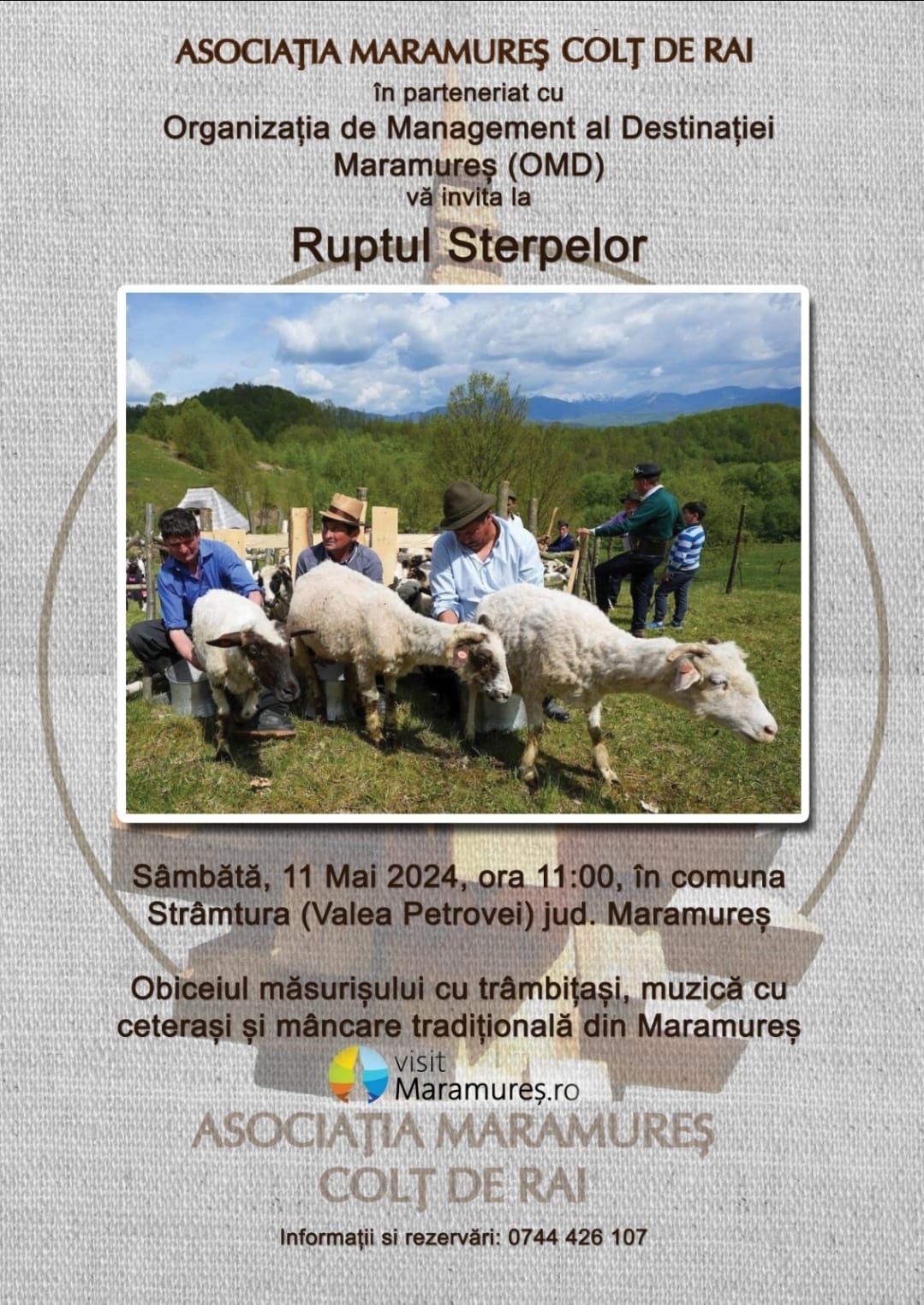 „Datorită aprecierilor dumneavoastră și implicării celor ce au fost prezenți anul trecut, împreună cu Organizația de Management al Destinației Maramureș, am hotărât să organizăm și anul acesta sărbătoarea „Ruptul Sterpelor”, sărbătoare care marchează debutul sezonului pastoral activ”, precizează organizatorii.