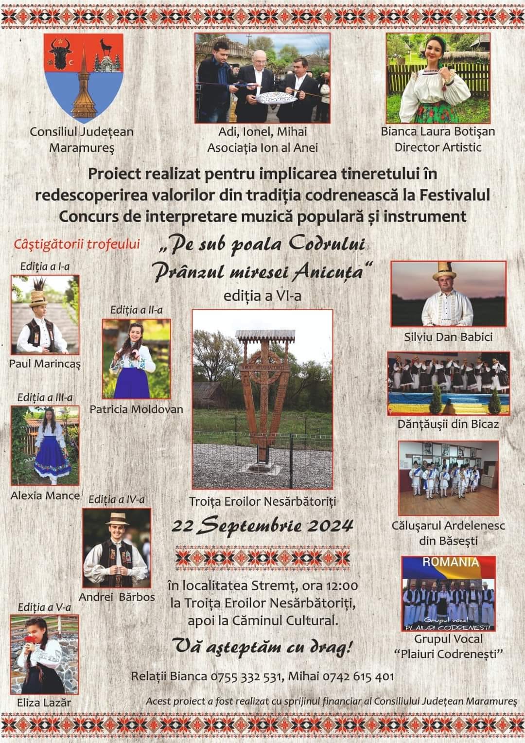 În 22 septembrie, în Stremț (comuna Băsești), se va desfășura ediția a VI-a Festivalului de folclor ,,Pe sub poala Codrului – Prânzul miresei Anicuța”.