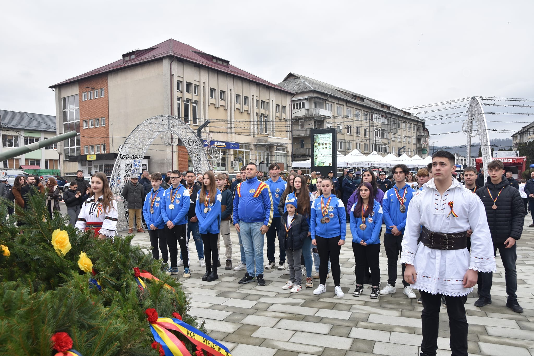 Autoritățile locale și județene alături de numeroși cetățeni au participat la slujba de pomenire, iar apoi au fost cântate cântece patriotice și s-au depus coroane de flori la Monumentul Eroilor din centrul orașului – un omagiu pentru cei care au plătit cu prețul vieții bucuria de a trăi într-o Românie unită.