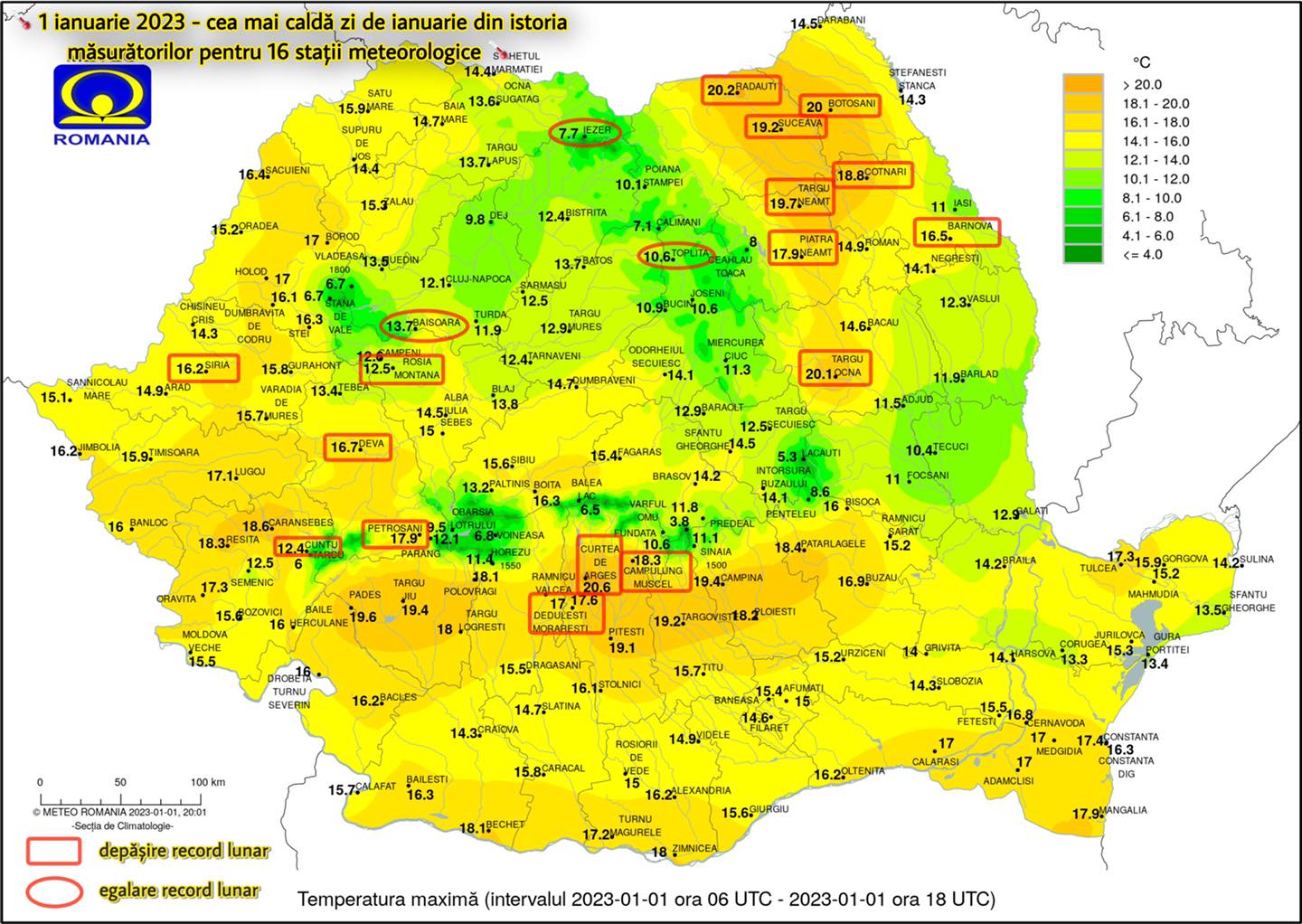 1 ianuarie 2023 || cea mai caldă zi de ianuarie din istoria măsurătorilor la 16 stații meteorologice!