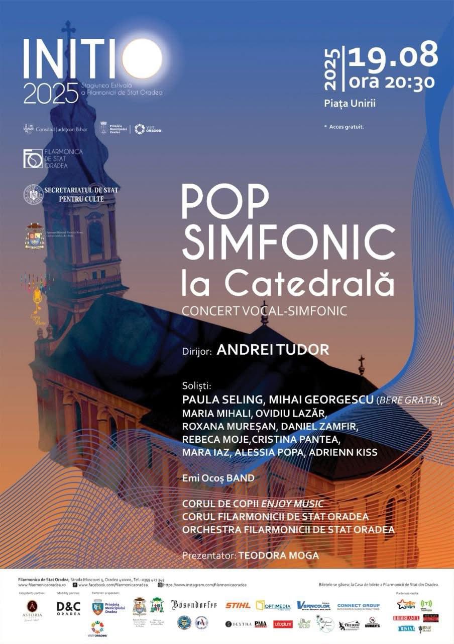 Pe 19 august, de la ora 20:30, Piața Unirii din Oradea va găzdui unul dintre cele mai așteptate evenimente muzicale ale verii – “Pop Simfonic la Catedrală”, parte din Stagiunea Estivală INITIO 2025 a Filarmonicii de Stat Oradea.