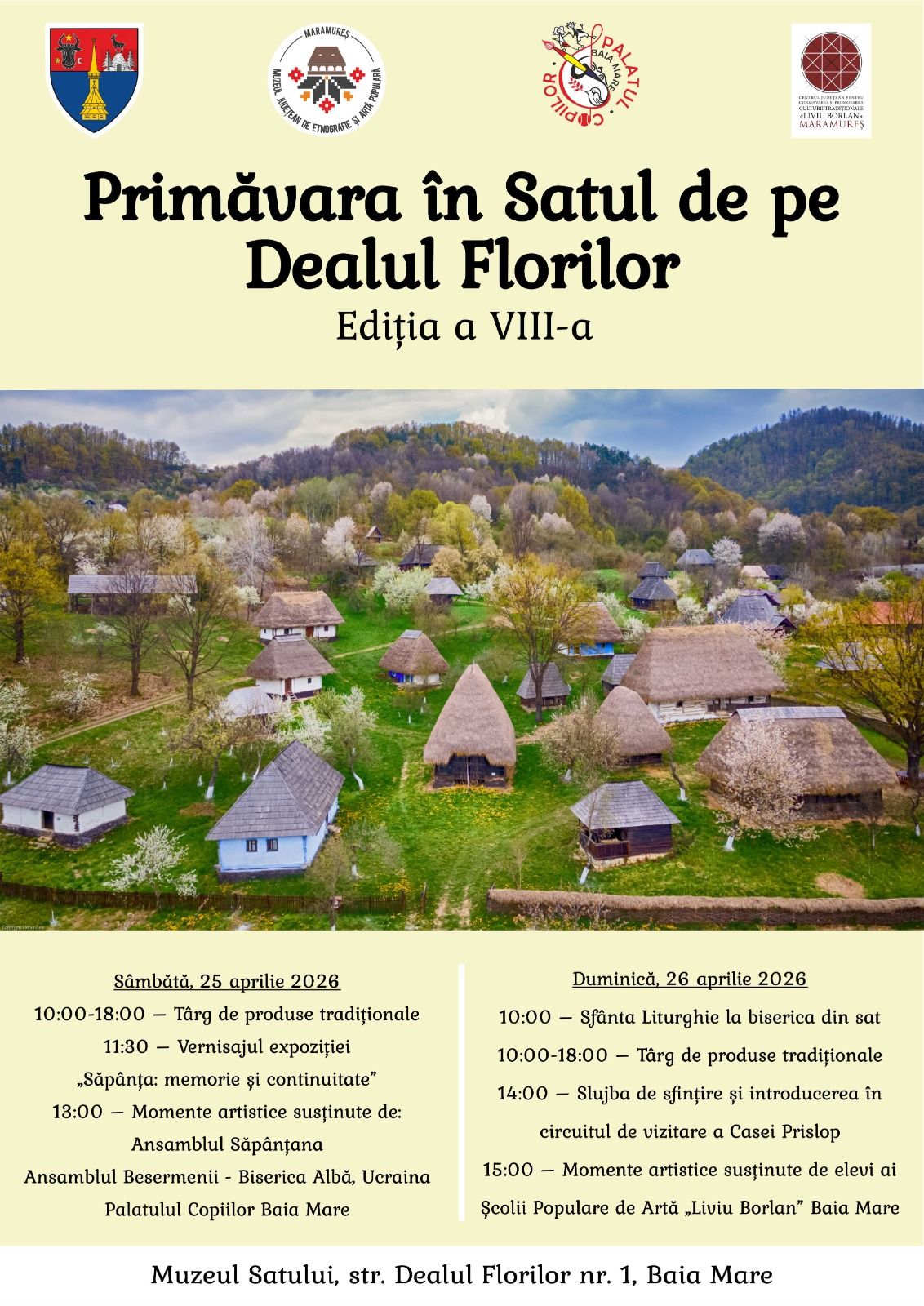 Cea de-a VIII-a ediție a evenimentului „Primăvara în Satul de pe Dealul Florilor” va avea loc în perioada 25–26 aprilie, la Muzeul Satului din Baia Mare, oferind publicului un program variat.
