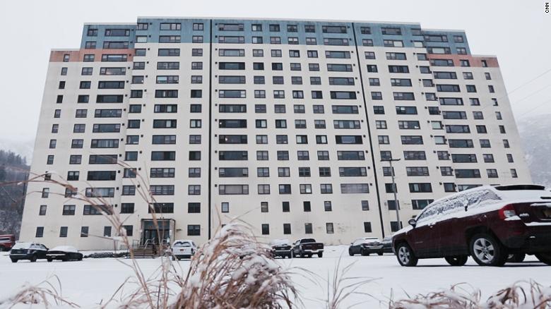 O tânără care locuiește aici și-a descris experiența pe o rețea socială, iar clipul s-a viralizat, utilizatorii fiind extrem de amuzați de povestea ei. Jenessa spune: „Există un oraș în care toată lumea locuiește în aceeași clădire. Iar eu locuiesc în prezent în clădirea respectivă”. Privind pe fereastră, ea a adăugat: „În această clădire există un oficiu poștal, o biserică și un magazin. În subsolul clădirii avem un tunel care face legătură cu școala, care este peste drum. În prezent, 318 de oameni locuiesc aici.”