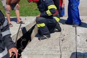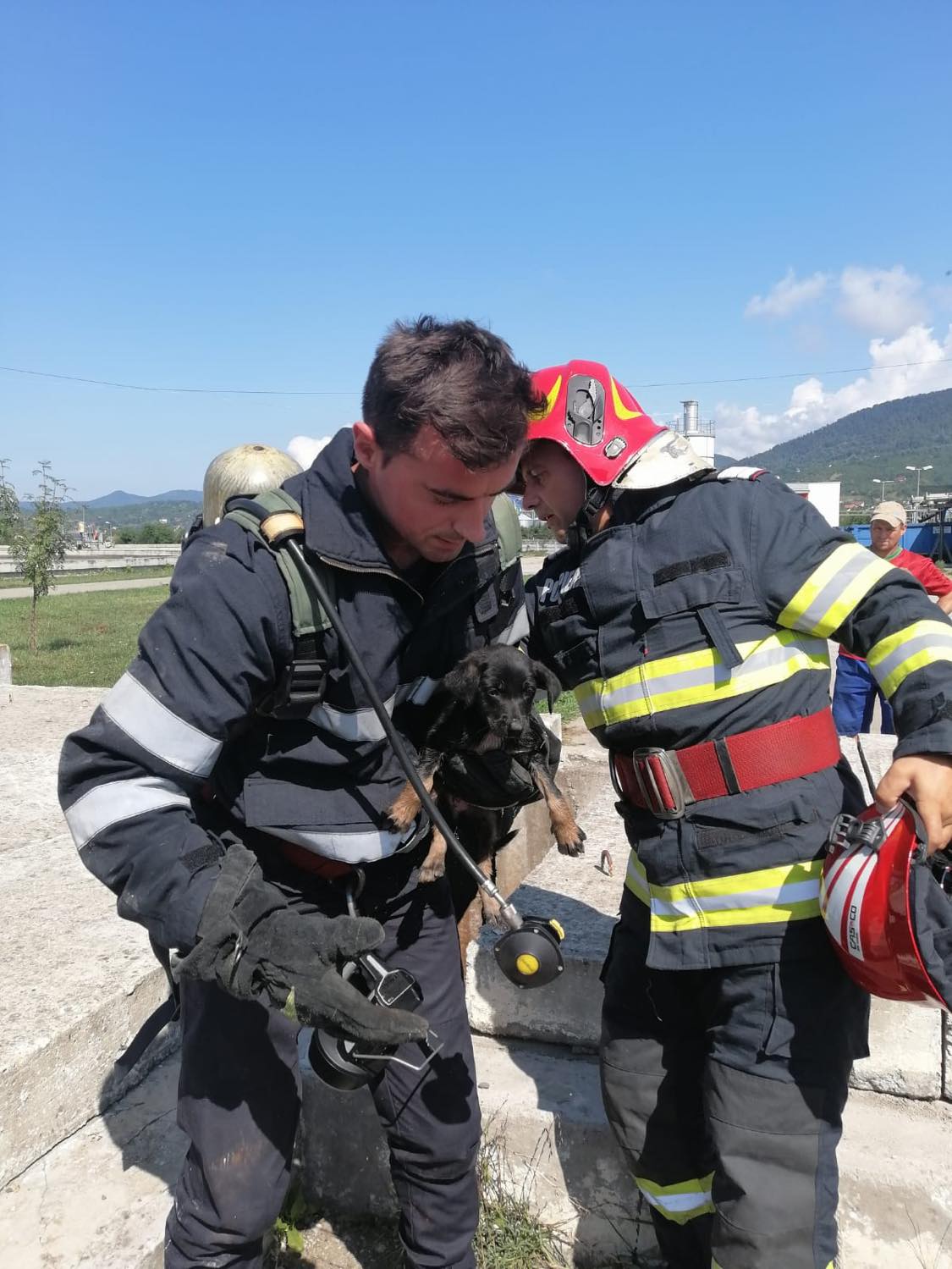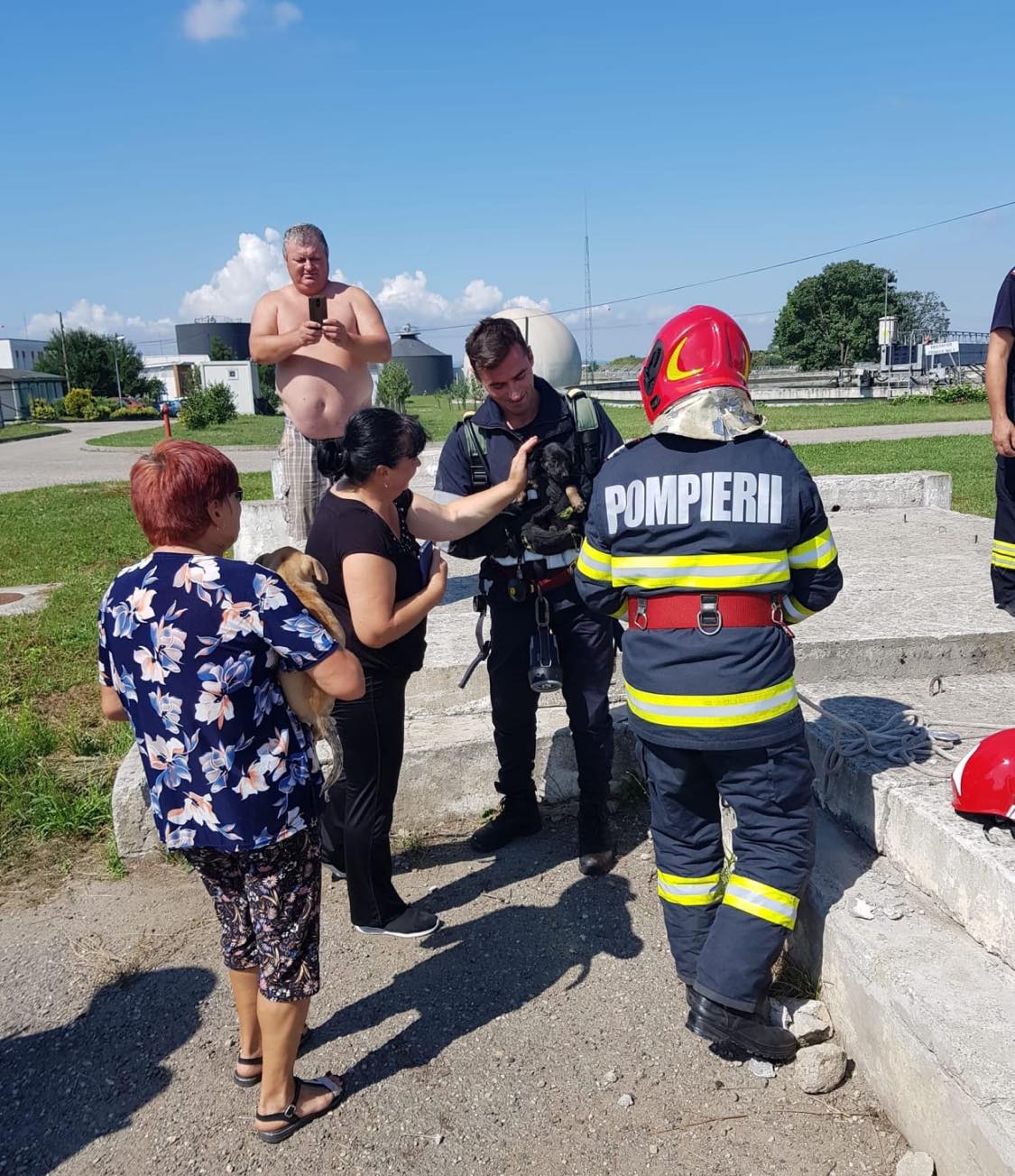 Pompierii au fost solicitați să salveze un cățel care se afla căzut într-un canal de beton.