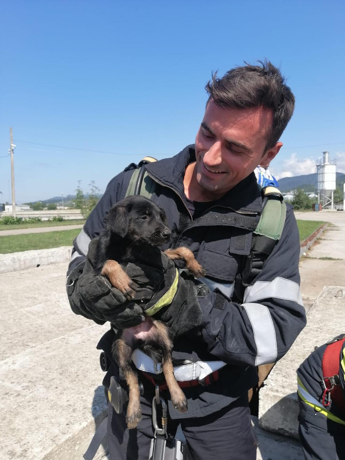 Intervenție în Baia Mare: Pompierii au salvat un cățel fără stăpân pe strada Iazului. Căzuse într-un canal. A fost imediat adoptat de o doamnă! (VIDEO ȘI FOTO)
