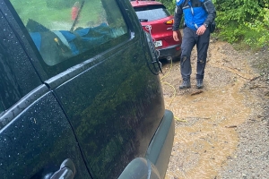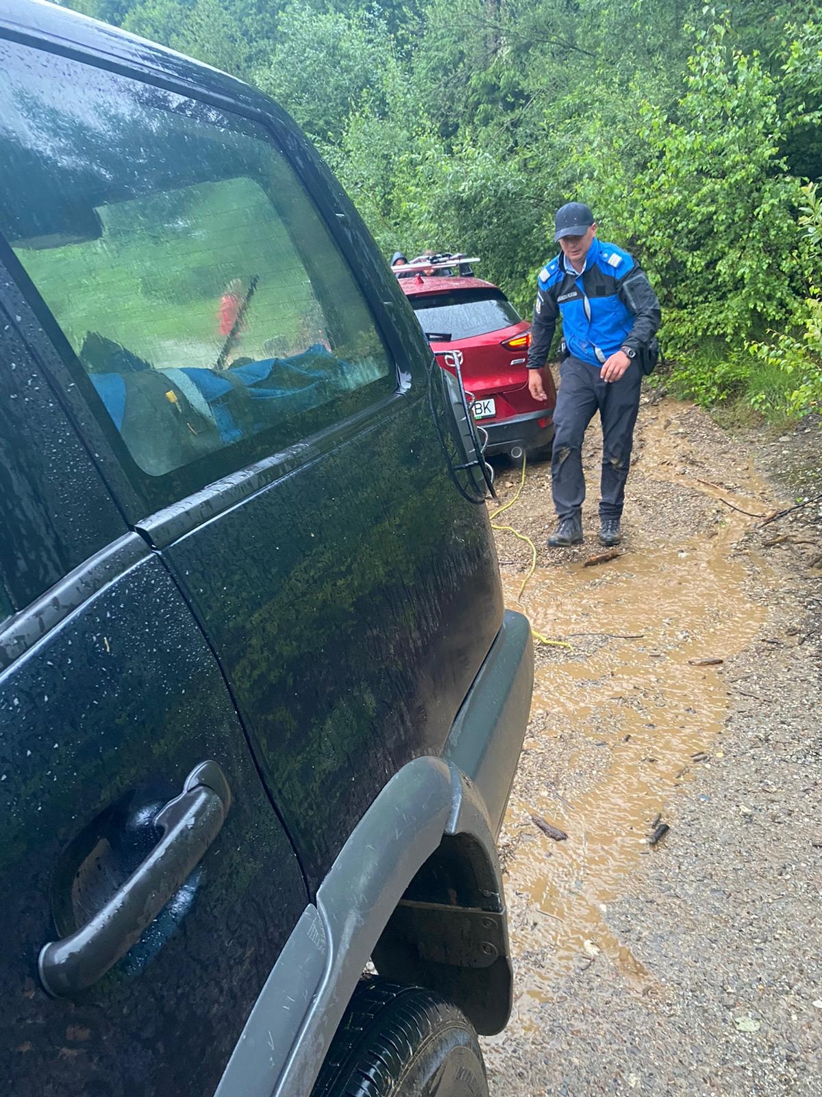 Intervenție în județul Maramureș: Un sucevean blocat cu mașina, în aluviunile rezultate în urma ploilor torențiale, a fost salvat de jandarmii din Borșa (FOTO)