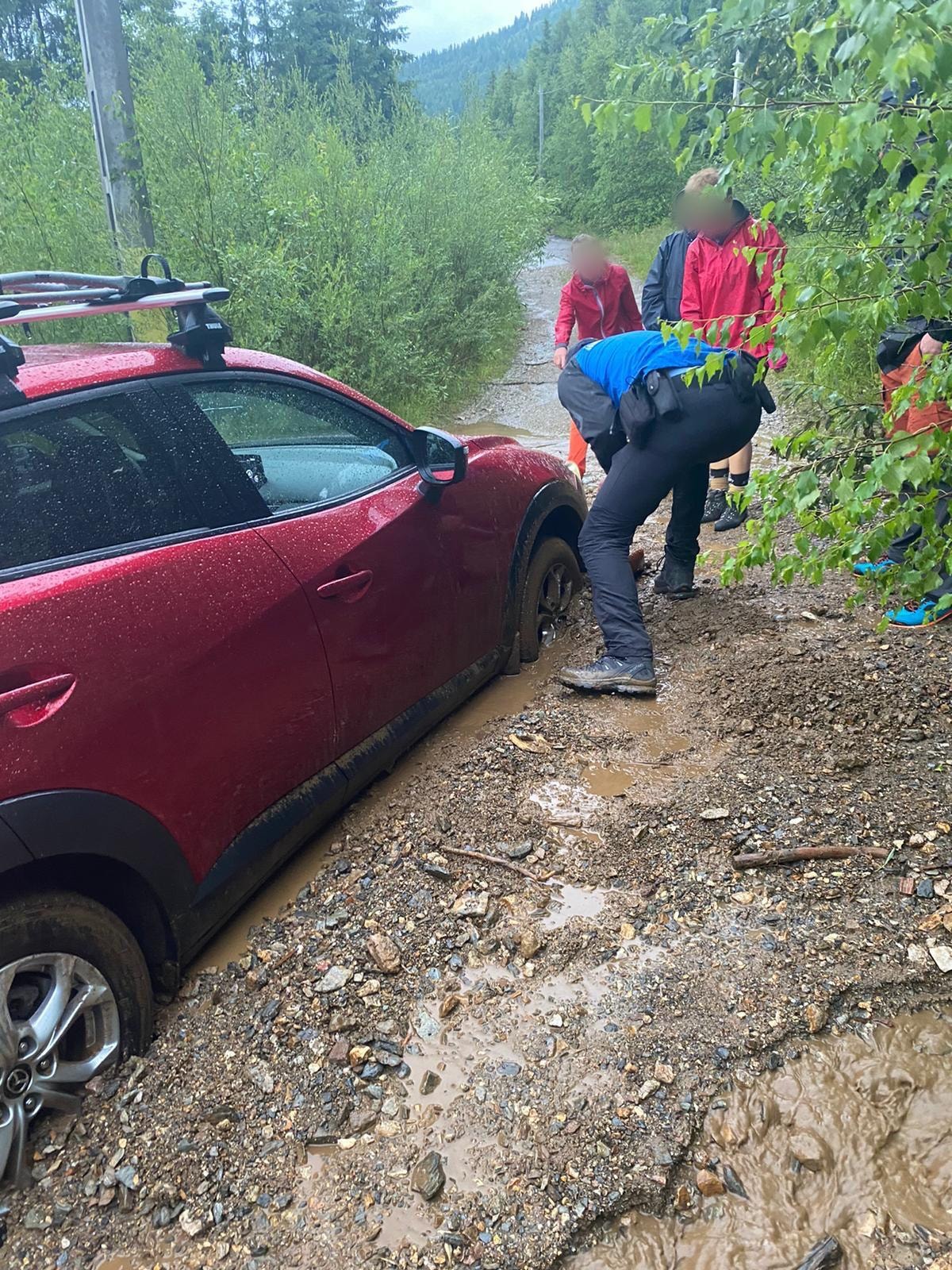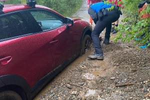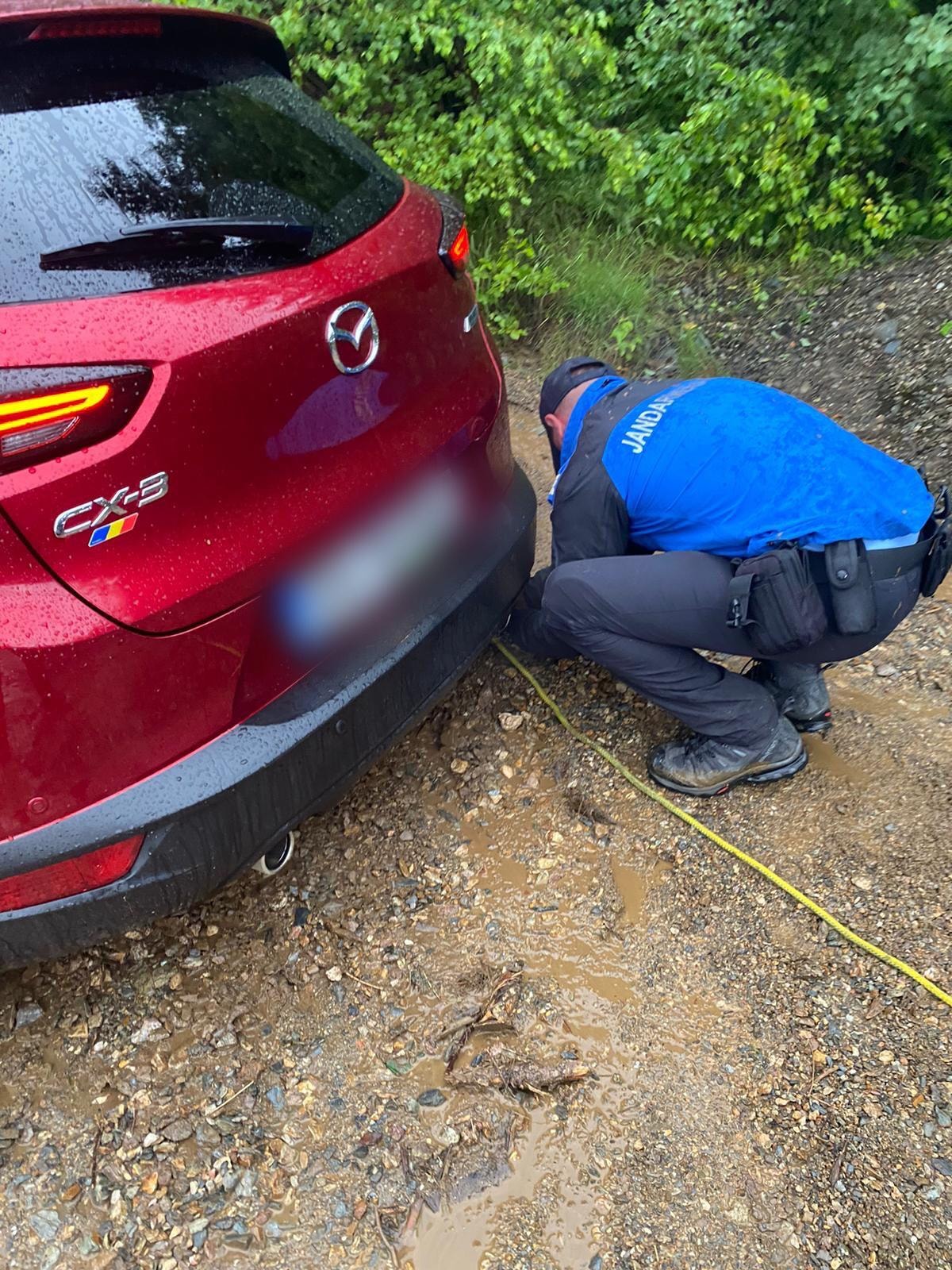 Un șofer din județul Suceava s-a împotmolit cu mașina în aluviunile rezultate în urma precipitațiilor abundente căzute sâmbătă la orele după-amiezii, fiind necesară intervenția jandarmilor montani pentru a-l scoate din nămol.