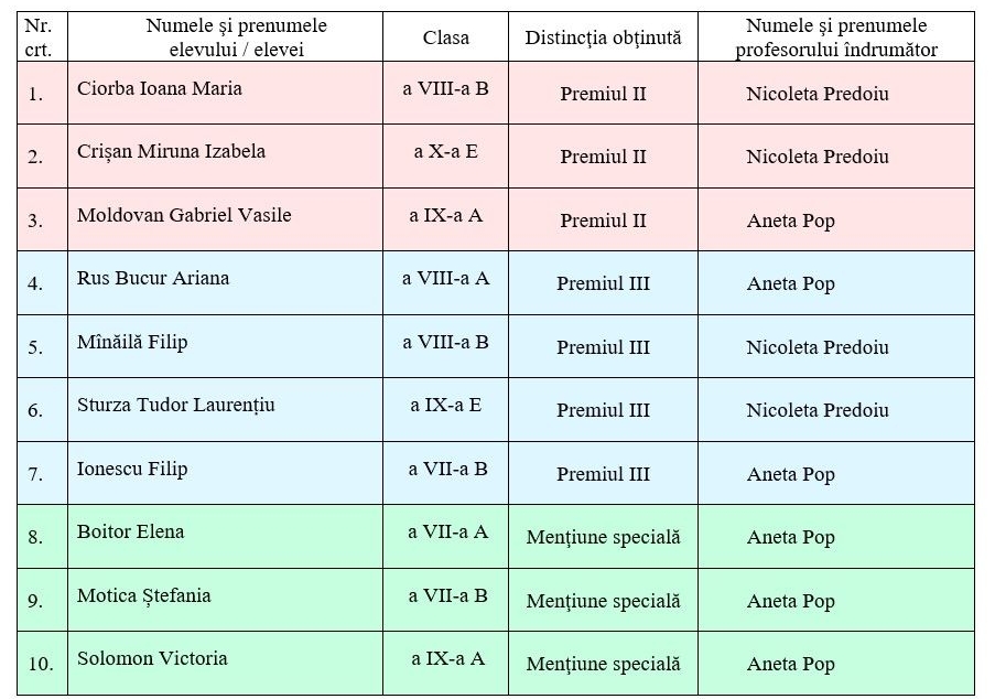 10 elevi din cadrul Colegiului Național „Gheorghe Șincai” Baia Mare au fost premiați la această competiție.