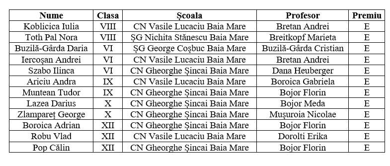 12 elevi au obținut premiul de excelență la cea de-a XXII-a ediție a Taberei de Matematică din Baia Mare