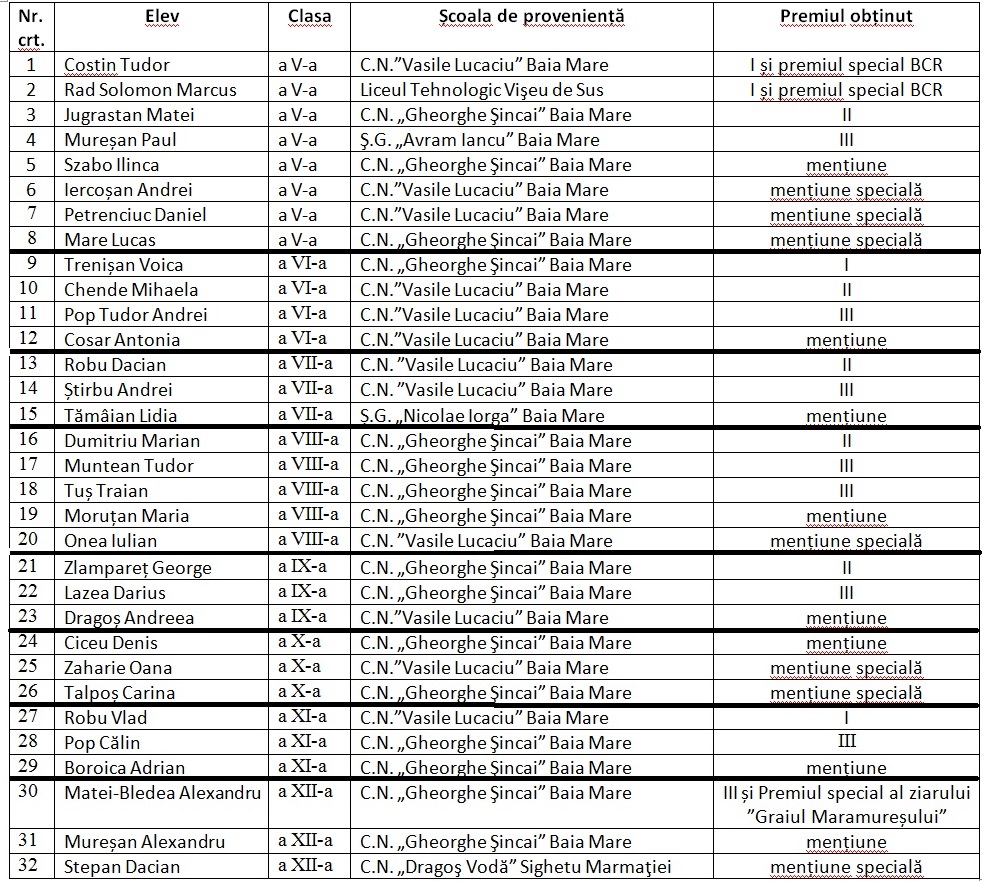 47 de elevi maramureșeni, premiați la Concursul Interjudeţean de Matematică şi Informatică ”Grigore C. Moisil”