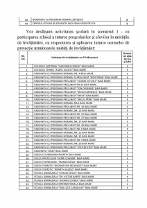 – 84 de unități de învățământ (școli cu personalitate juridică și structuri arondate) în Scenariul 2 (S2, galben);