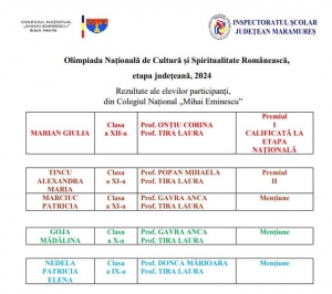 Maria Alexandra Tincu este elevă în clasa a-XI-a la Colegiul Național „Mihai Eminescu” Baia Mare. De curând a participat la Olimpiada Națională de Cultură și Spiritualitate Românească, etapa județeană. A fost pregătită de profesoarele Mihaela Popan și Laura Tira, obținând premiul al- II- lea.