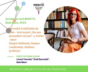 În perioada 5-7 august 2024, în Baia Mare se va desfășura a-V-a ediție a Școlii de vară „Merito”. Aceasta va include ateliere pentru un număr de 40 de elevi din ciclul primar, gimnazial și liceal și ateliere pentru 20 de profesori de toate nivelurile. Vor fi prezenți 9 dascăli facilitatori MERITO din: Maramureș, Sălaj, Călărași, Dâmbovița, Sibiu, Tulcea și București. Pe parcursul celor trei zile, se vor alătura taberei și 10 voluntari.