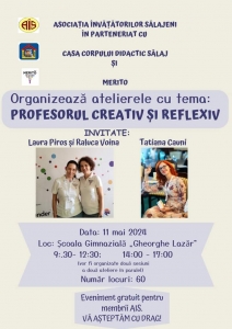 Tema aleasă este: „Profesorul creativ și reflexiv”. Evenimentul va fi găzduit de Școala Gimnazială „Gheorghe Lazăr” Sălaj. Activitatea se va desfășura în două sesiuni, a câte două ateliere în paralel, în intervalele orare 09.30-12.30 și 14.00-17.00