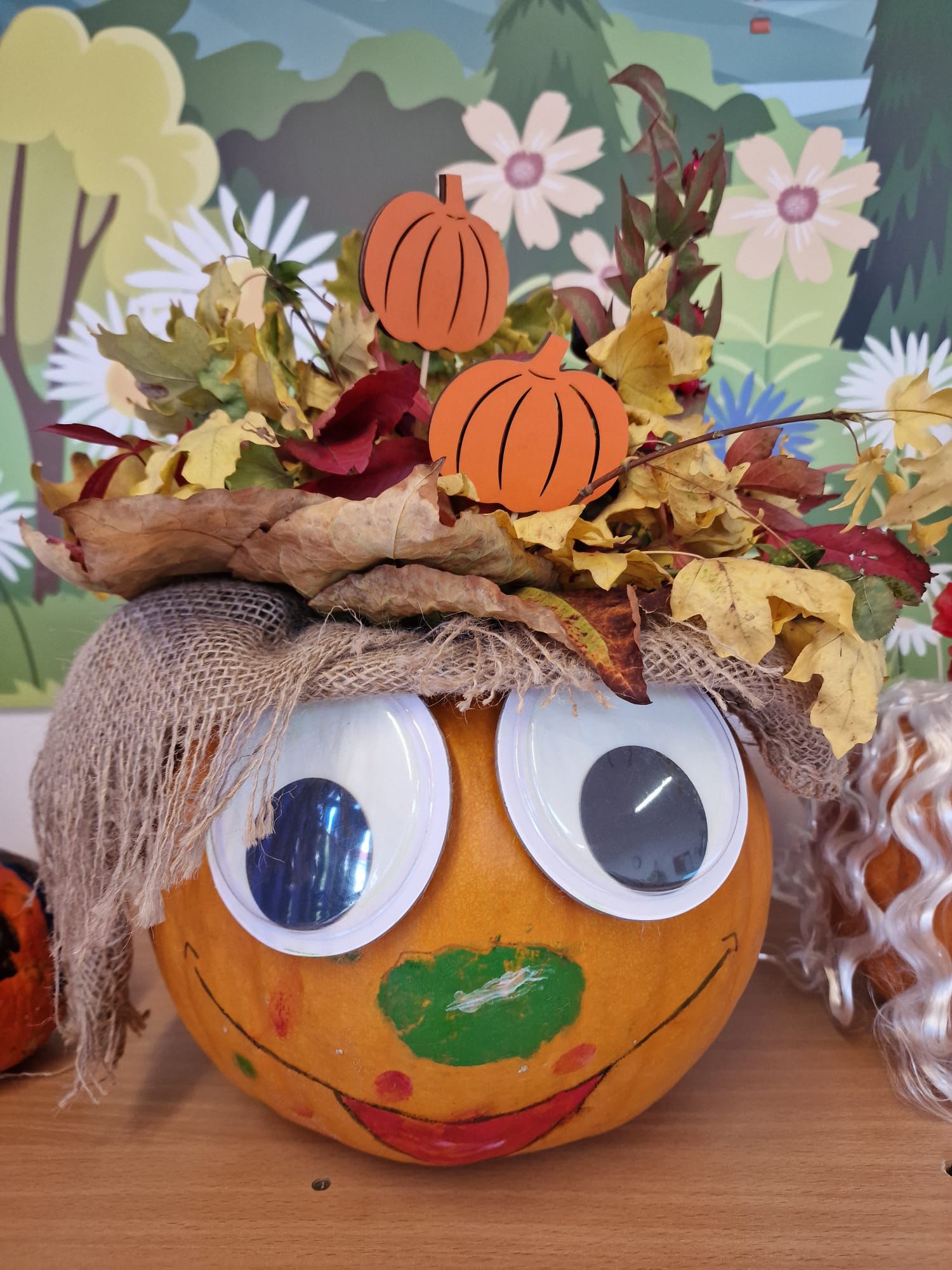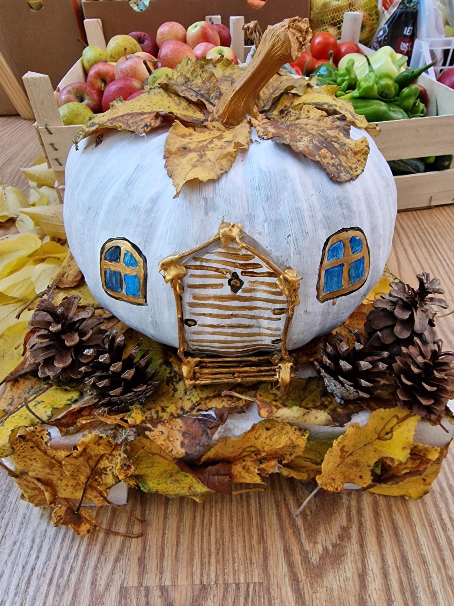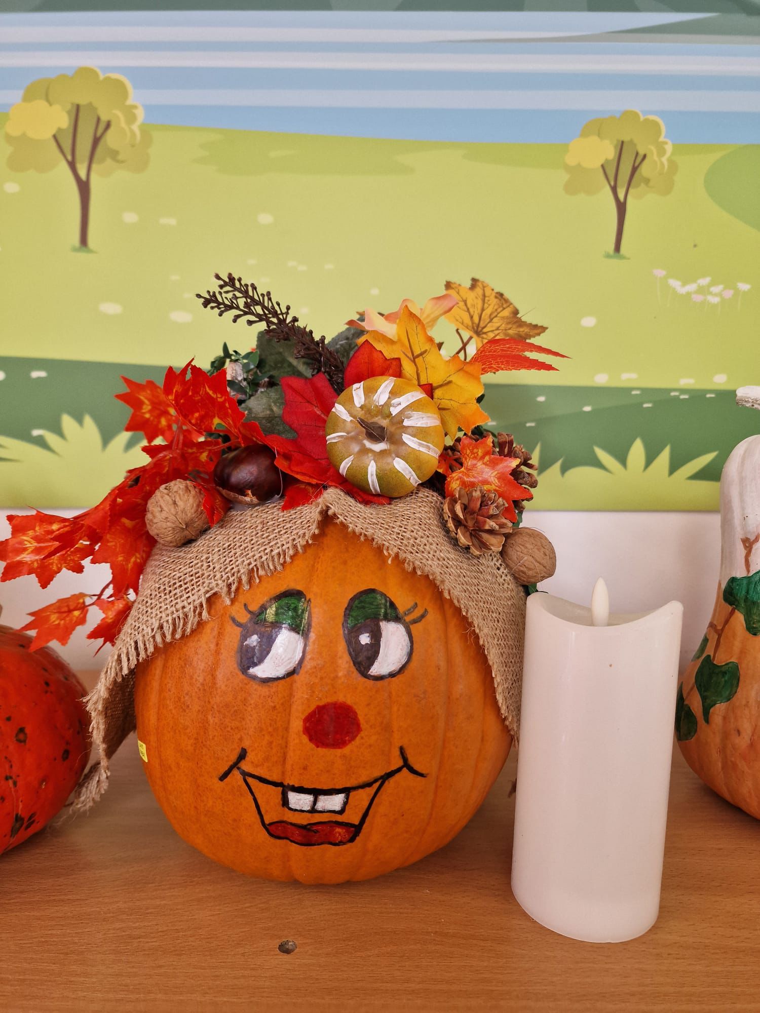 «Mâini care creează, inimi care zâmbesc» așa s-a numit activitatea părinte-copil prin care s-au decorat dovleci pe care i-am folosit în pavoazarea zonei de desfășurare a evenimentului.