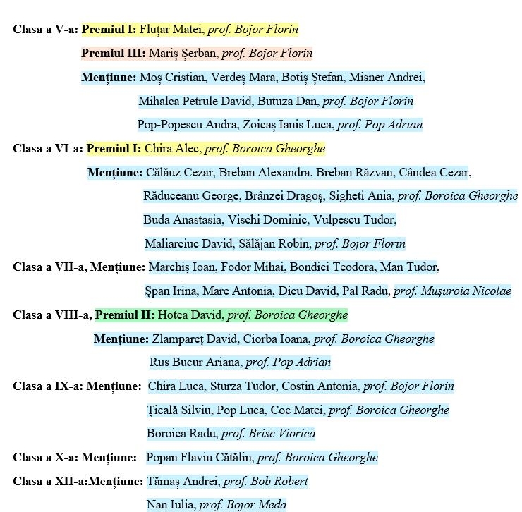 Iată care sunt premiile obținute de elevii de la Colegiul Național „Gheorghe Șincai” Baia Mare: