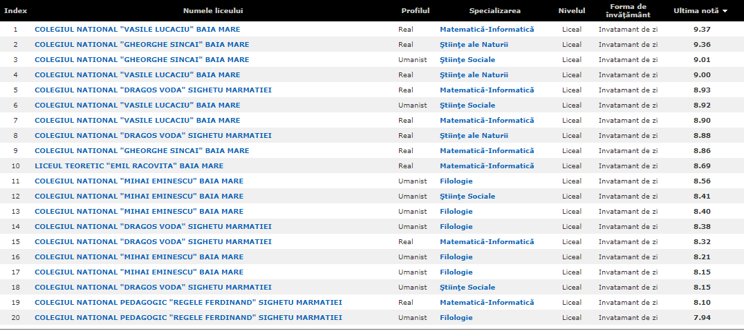 Iată care sunt liceele/specializările din Maramureș la care s-a intrat cu cele mai mari medii: