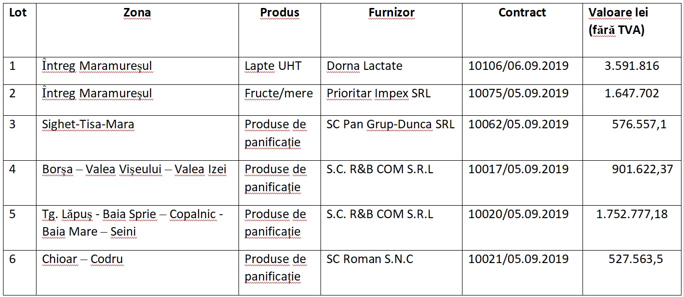Pentru derularea în anul școlar 2019-2020 a Programului pentru școli al României – denumit generic ”laptele și cornul” – în Maramureș s-au încheiat contractele cu furnizorii pentru toate produsele și pentru toate zonele, livrările începând chiar din prima zi de școală.
