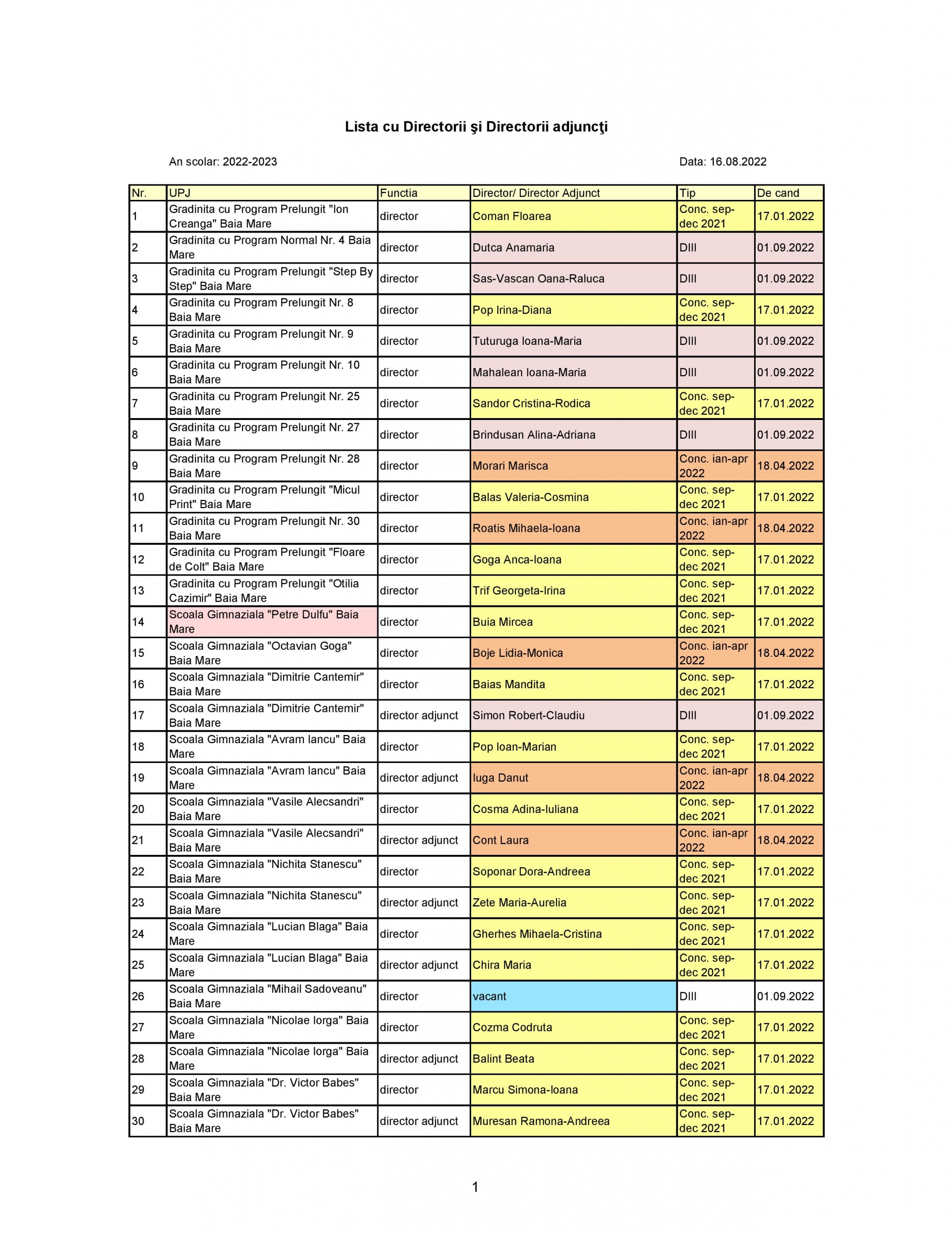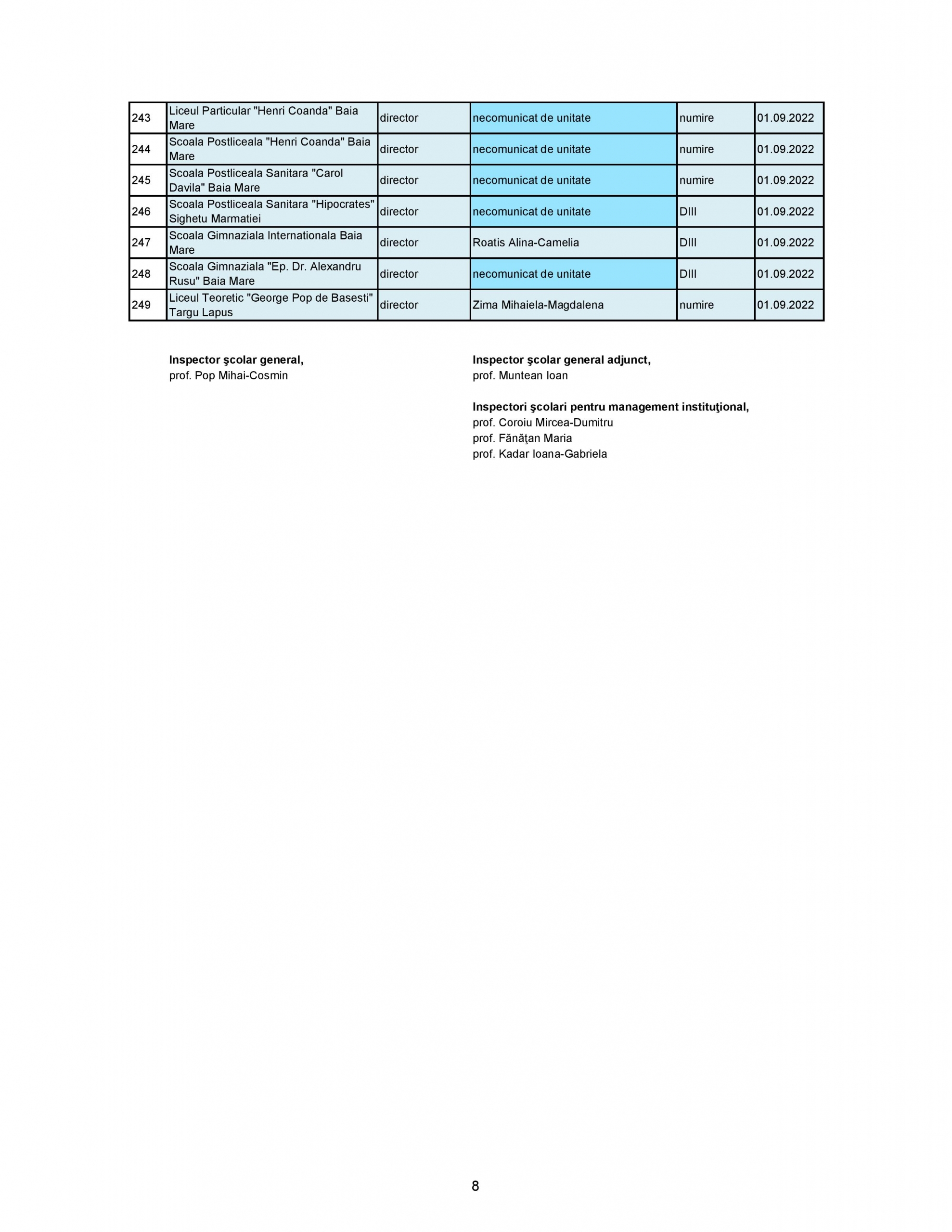 Zilele trecute, pe site-ul Inspectoratului Școlar Județean (ISJ) Maramureș a fost publicată lista cu directorii și directorii adjuncți pentru anul școlar 2022-2023.