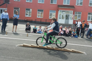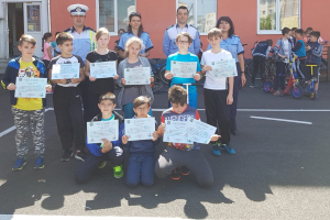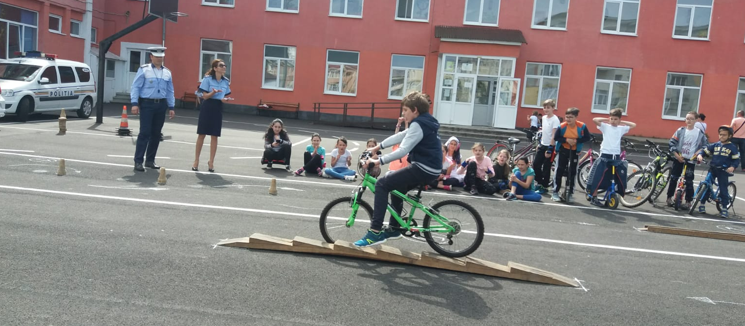 Proba practică, la care elevii au participat cu biciclete şi trotinete, a fost coordonată de către col. (r) Cârlig Ioan. Participanții au parcurs un traseu cu şase obstacole: (slalom printre jaloane, sărituri, trecere printr-un culoar delimitat de două scânduri etc.). Cei mai buni concurenţi au fost recompensați cu diplome.