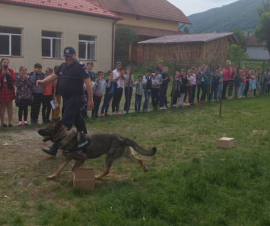 Îndrăzneţi şi comunicativi, cei mici au fost răsplătiţi pentru răspunsuri şi implicare cu mici premii oferite din partea inspectoratului de poliţie. Dar marea recompensă a constituit-o surpriza de final: exerciţii demonstrative ale ofiţerilor patrupezi Vis şi Teba, sub coordonarea conductorilor.