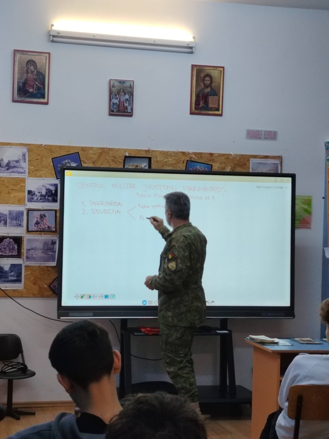 Elevii au asistat la o prezentare susținută de Plutonierul adjutant principal Lupu Claudiu, descoperind oportunitățile oferite de învățământul militar preuniversitar, avantajele unei cariere militare, precum și parcursul educațional și profesional pe care îl pot urma. Tinerii au aflat informații valoroase peivind procesul de înscriere, criteriile de admitere, probele de concurs, condițiile medicale și fizice necesare, dar și perioada în care se desfășoară toate acestea.