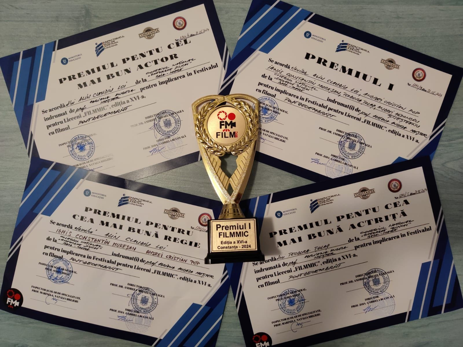 „Ce se ascunde în spatele premiilor? Idei, pasiune, muncă, neliniștea întrebărilor și satisfacția răspunsurilor găsite. Ce se află în fața premiilor? Confirmarea valorii. Iar elevii Colegiului Național „Gheorghe Șincai” Baia Mare și-au confirmat, din nou, valoarea, la Festivalul Național de Scurtmetraje „Filmmic”, desfășurat la Constanța, în cadrul căruia efortul lor a fost răsplătit (așa cum ne-am așteptat) cu premiul 1. Tot premiul 1 l-au obținut la mai multe categorii: cea mai bună regie, cel mai bun actor Alin Loi, cea mai bună actriță Teodora Țolas.