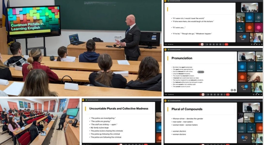 „Conferința m-a ajutat să înțeleg multe aspecte ale gramaticii limbii engleze într-un mod clar și captivant. Am explorat împrumuturile lingvistice, substantivele numărabile și nenumărabile, ordinea cuvintelor, substantivele colective, articolele și pronunția. Am apreciat modul în care fiecare concept a fost explicat cu exemple practice. A fost o experiență foarte utilă și plăcută și aș fi fericită să particip din nou.”, a precizat Alesia Pop, elevă în clasa a IX-a.