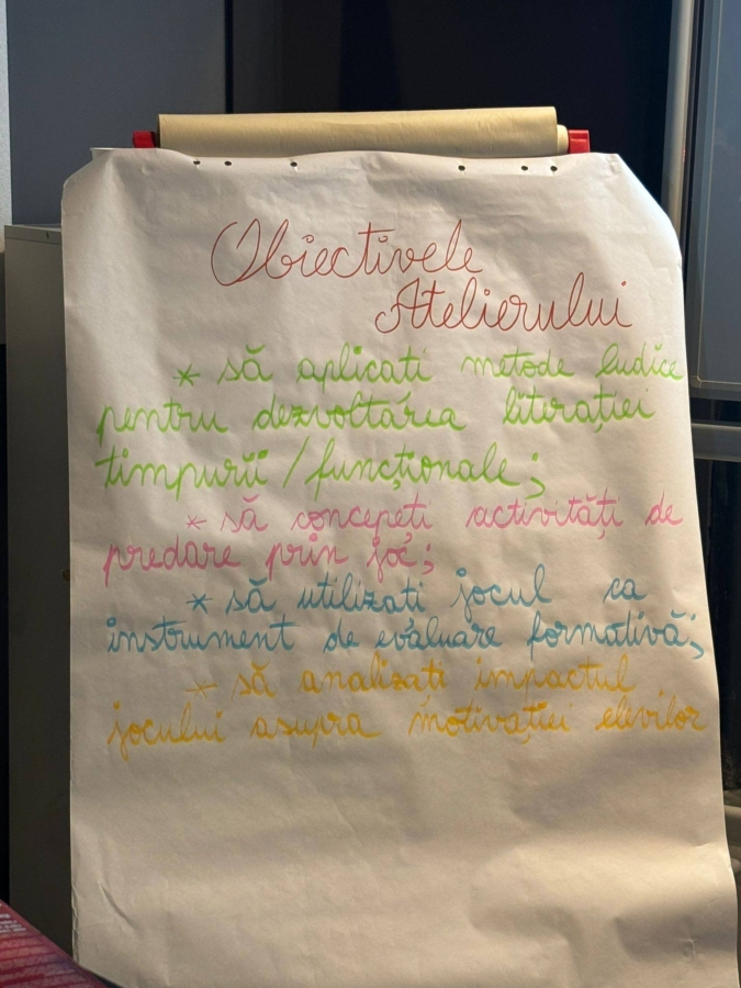 Atelierul a fost susținut de prof. Chiver Delia, prof. Porumb Andreea și prof. Moldovan Nicoleta, care au ghidat cu profesionalism cadrele didactice debutante și studentele la Pedagogia Învățământului Primar și Preșcolar prin universul jocului didactic, demonstrând cum elementele ludice pot fi integrate riguros în dezvoltarea competențelor de literație.