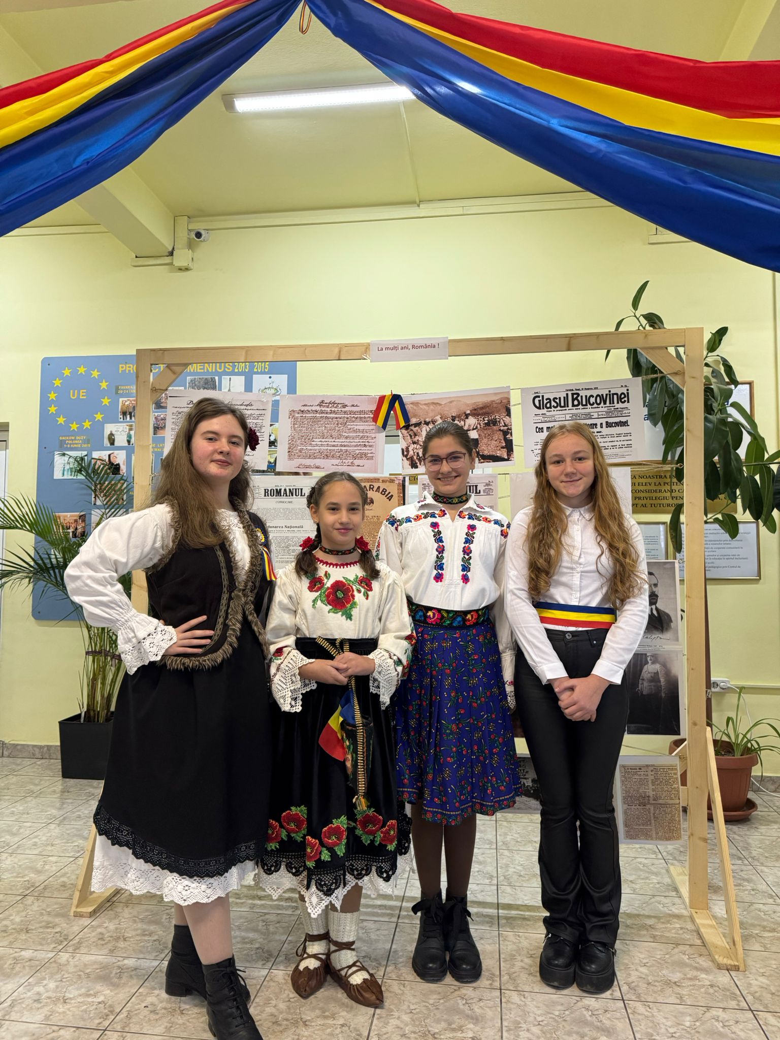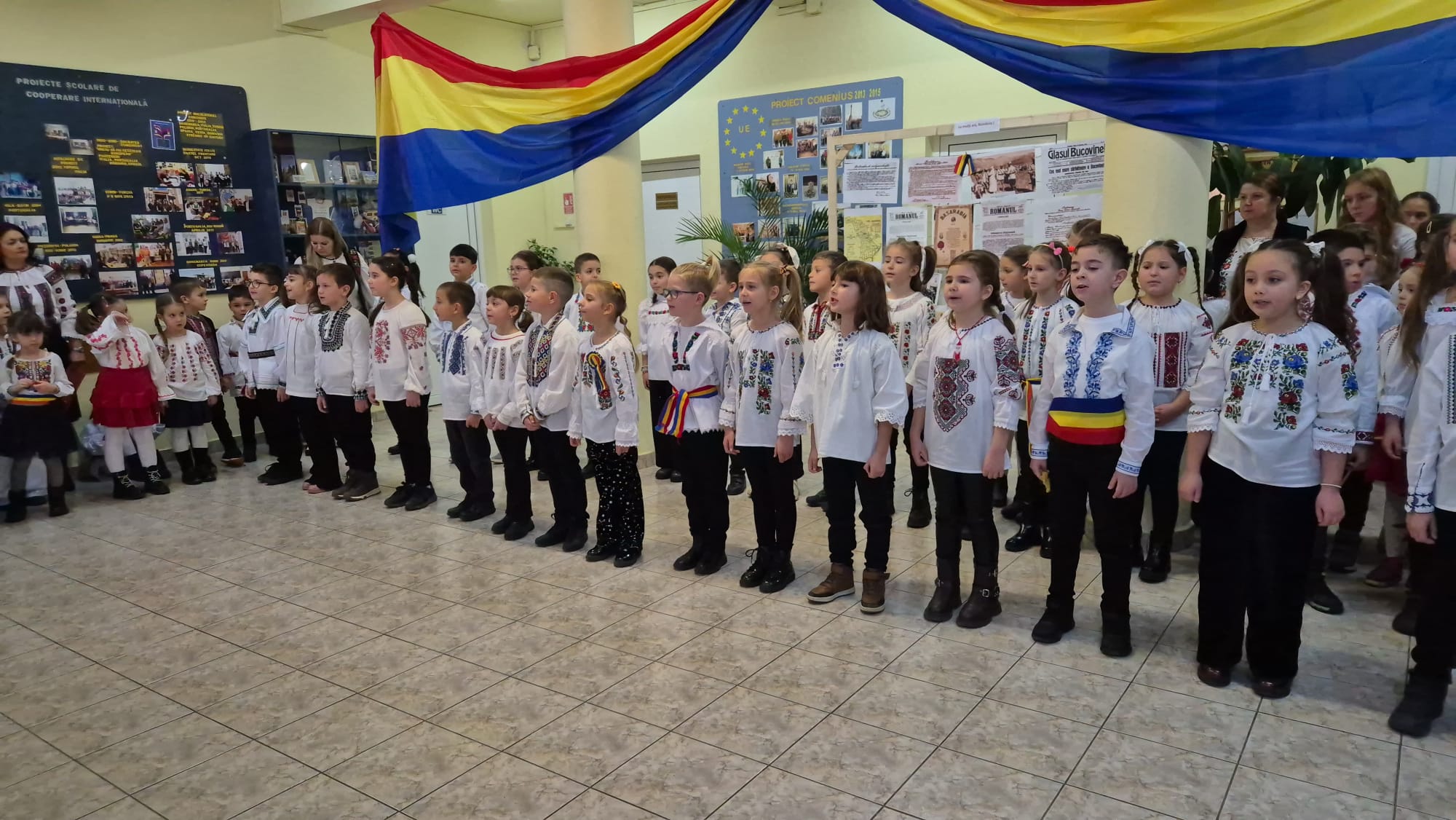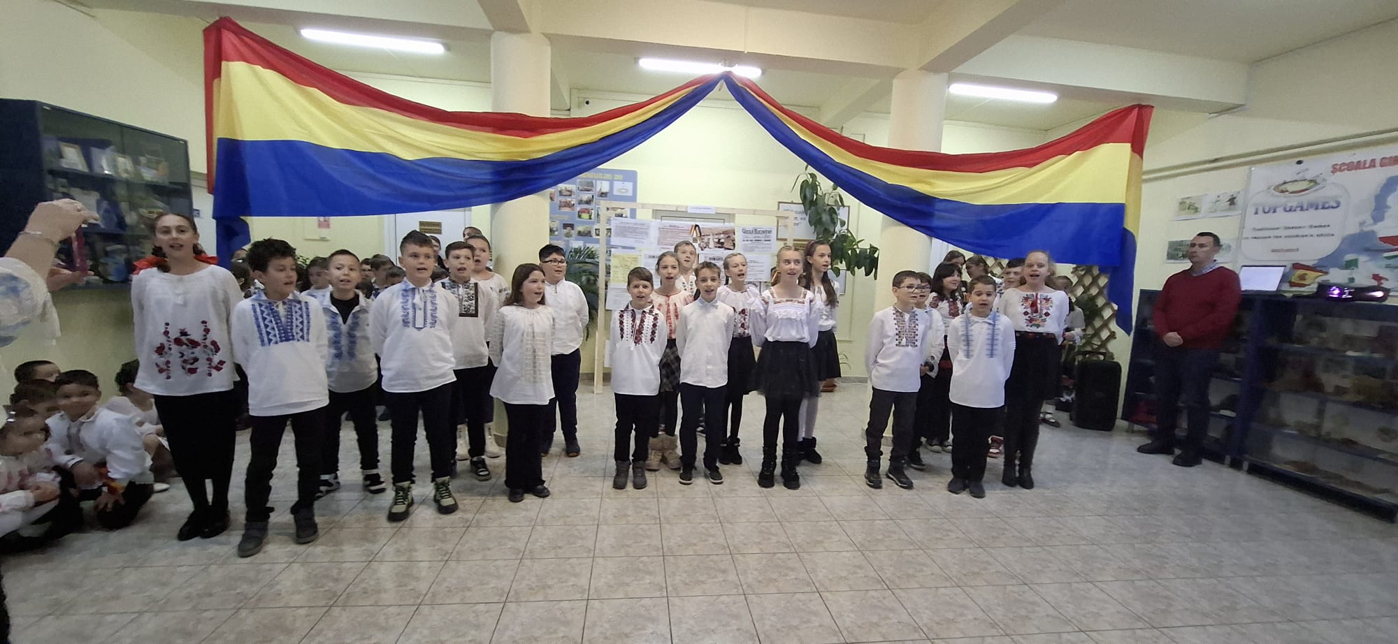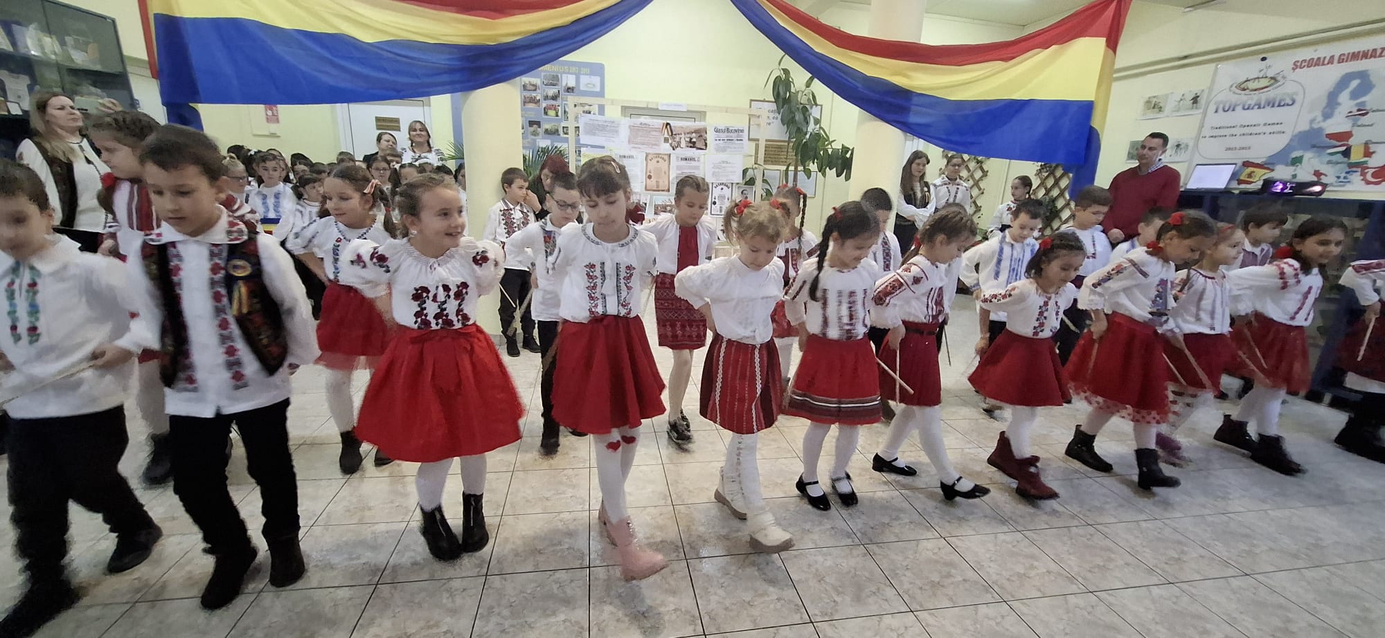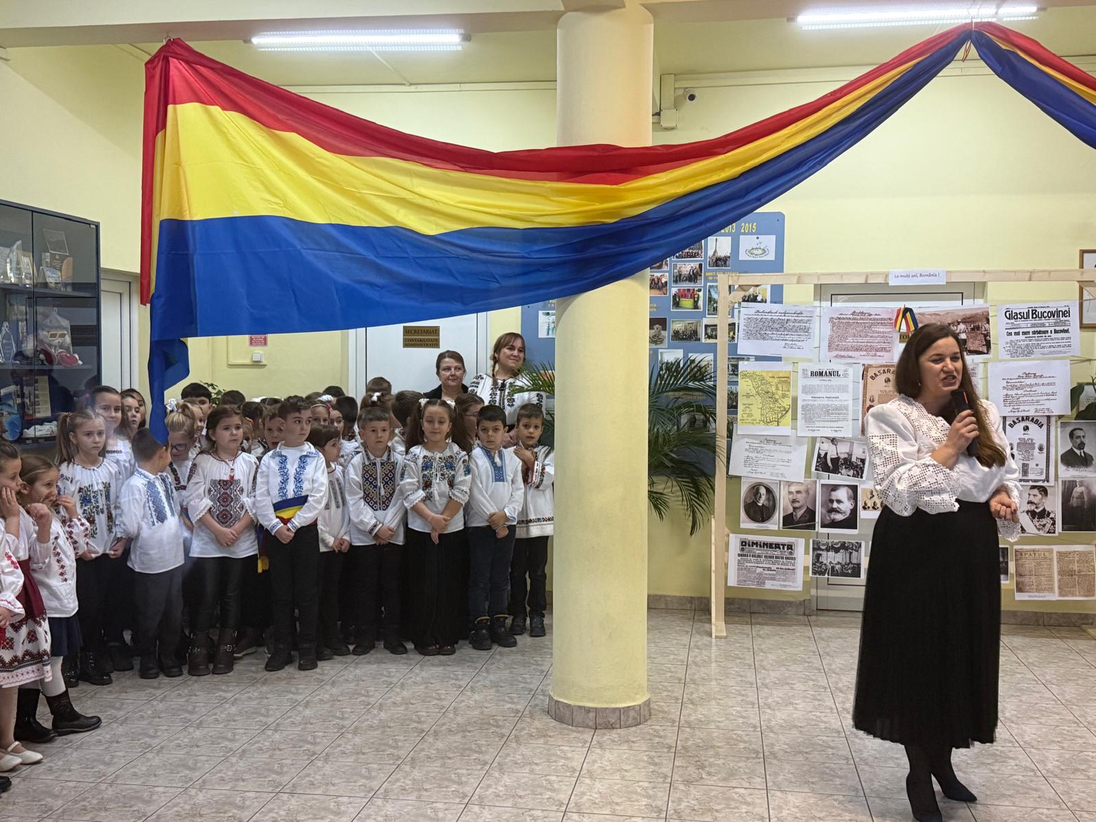 Evenimentul a început cu intonarea Imnului Național, interpretat cu sensibilitate de Siladi Adina, clasa a VI-a B. În continuare, prof. Rusu Niculina a vorbit despre semnificația zilei de 1 Decembrie, invitând întreaga comunitate la reflecție și bucurie patriotică.