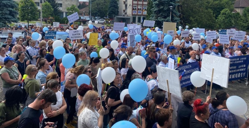 Aproximativ 1.500 de angajați din învățământul preuniversitar din toate colțurile județului au răspuns apelului Sindicatului Liber din Învățământ Maramureș (SLI MM) prezentându-se luni, 29 mai, la acțiunea de pichetare a Instituției Prefectului Județului Maramureș.