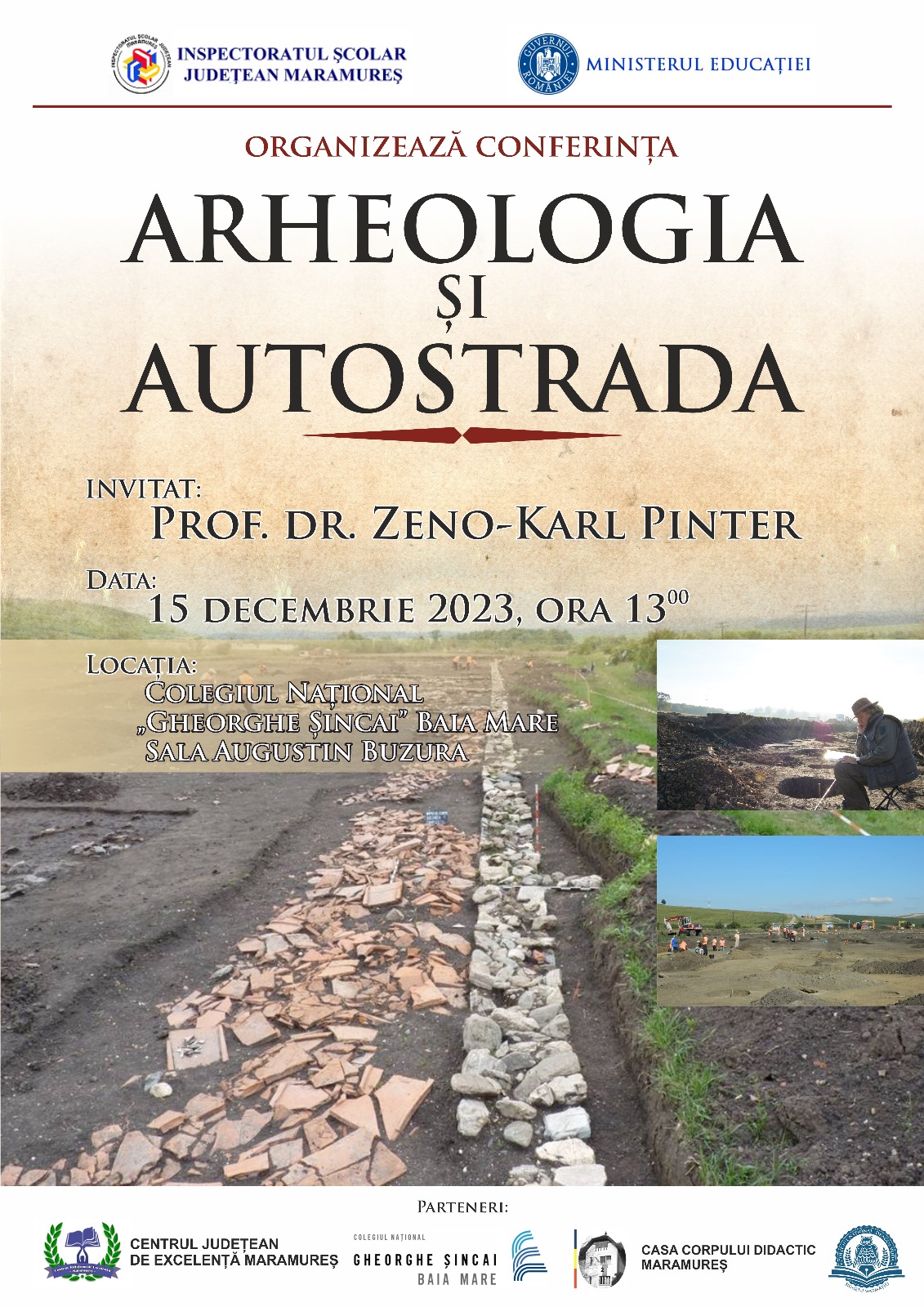 În data de 15 decembrie, la Colegiul Național „Gheorghe Șincai” Baia Mare a fost organizată conferința „Arheologia și autostrada”, susținută de prof.dr. Zeno-Karl Pinter.