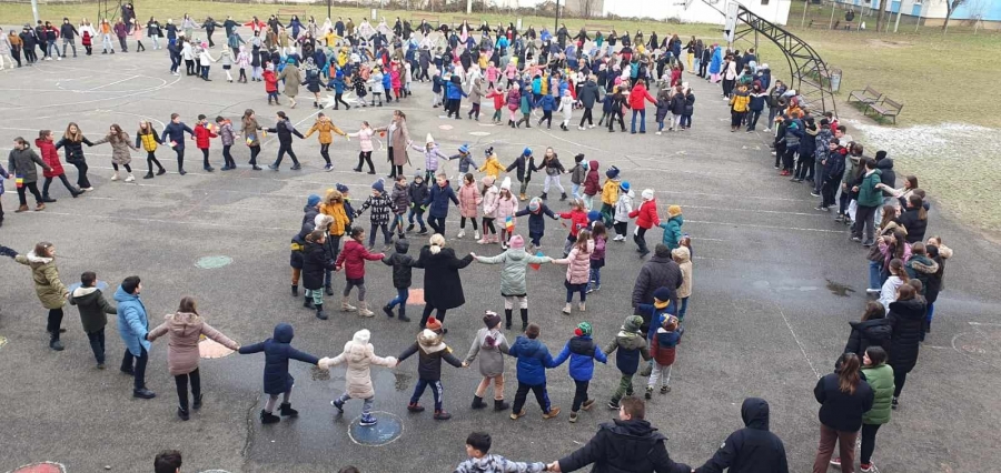 Eleva Covaci Melisa din clasa a VII-a A (diriginte prof. Pop Ana Mihaela) a deschis programul artistic prin intonarea imnului de stat, copiii din clasa a IV-a B (înv. Avram Ileana) au încălzit sufletele tuturor cu un minunat recital, iar la final toți elevii şcolii s-au prins în horă, bucurându-se astfel de comemorarea unui eveniment deosebit din istoria poporului nostru.