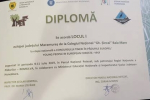 În perioada 9 – 12 iulie, în Parcul Național Retezat, elevi din 15 județe ale țării au participat la etapa națională a concursului ”Tineri în Pădurile Europei” (Young People in European Forests – YPEF). În urma competiției, la faza internațională (care va avea loc în Cehia) s-au calificat elevi de la Colegiul Național ”Gheorghe Șincai” Baia Mare – Ancuța Dîrle, Sara Nagy și Sebastian Antonio Toma (foto) – coordonați de profesoara Valentina Panas.