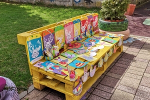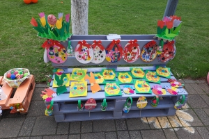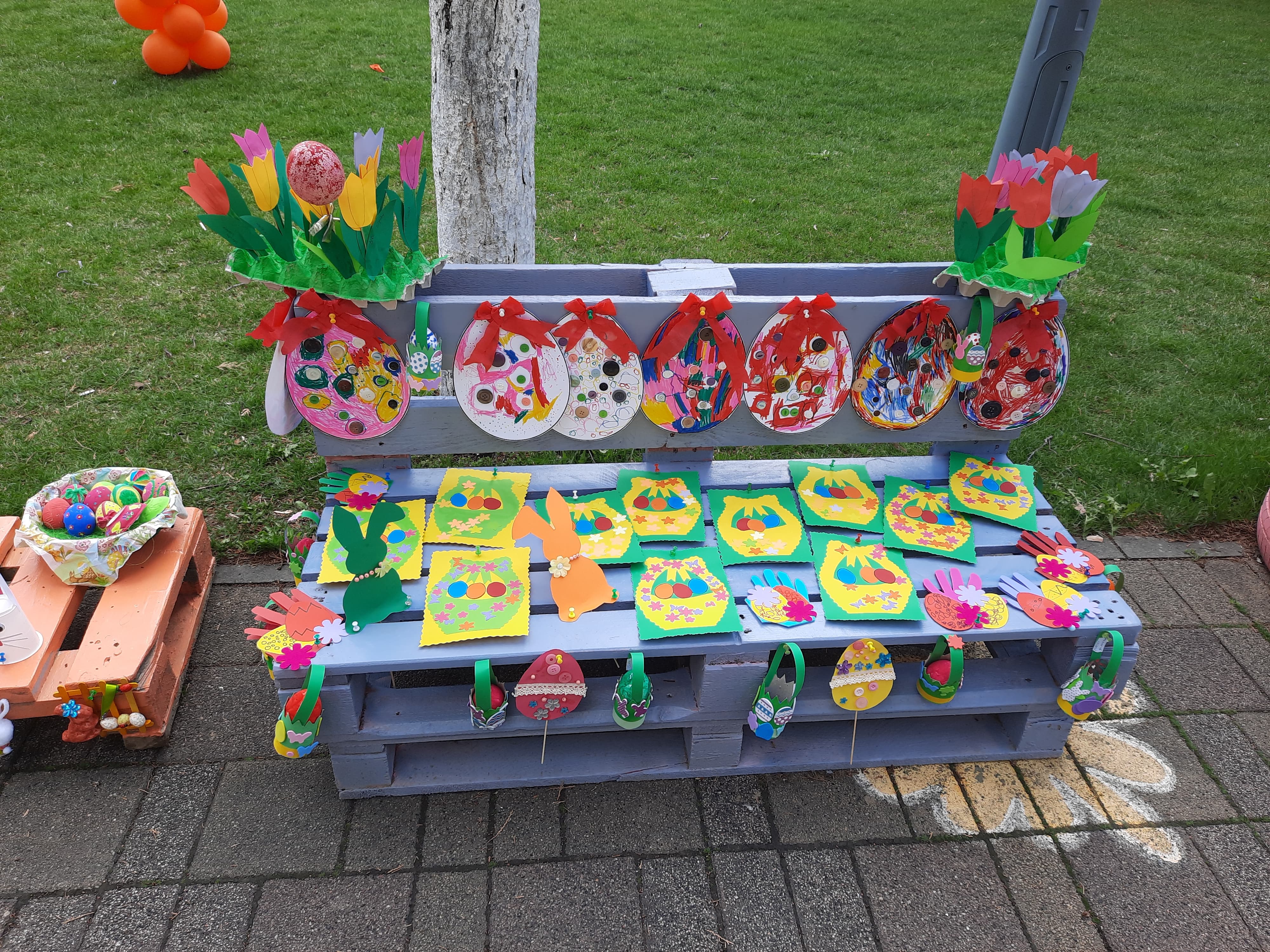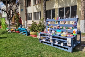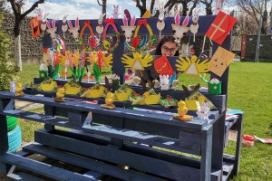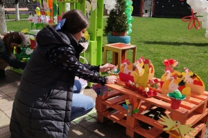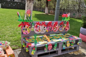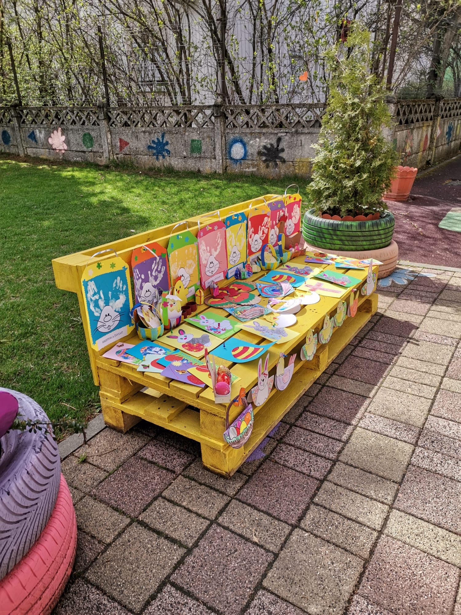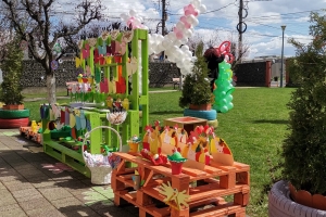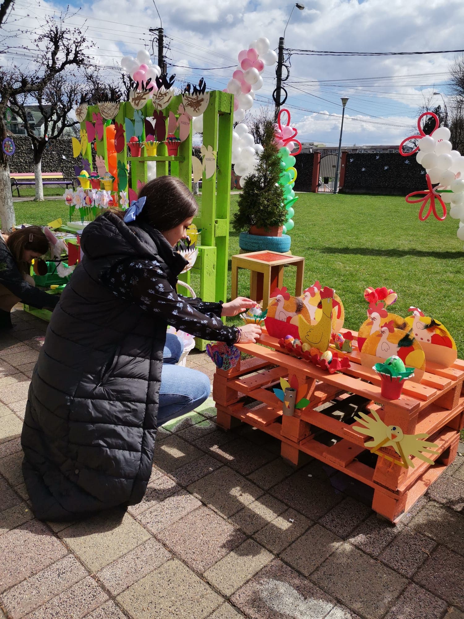 În semn de mulțumire pentru copii, dar și pentru părinți, cadrele didactice le-au pregătit o surpriză: au animat spațiul verde al grădiniței cu diverse decorațiuni de Paște. Acestea sunt îndrăgite de copii și aduc un plus de valoare întregii expoziții.