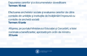 Cererile și documentele necesare se pot trimite până în 16 mai. Calendarul de desfășurare a activităților pentru acordarea acestui sprijin îl găsiți mai jos. Alte detalii găsiți aici.