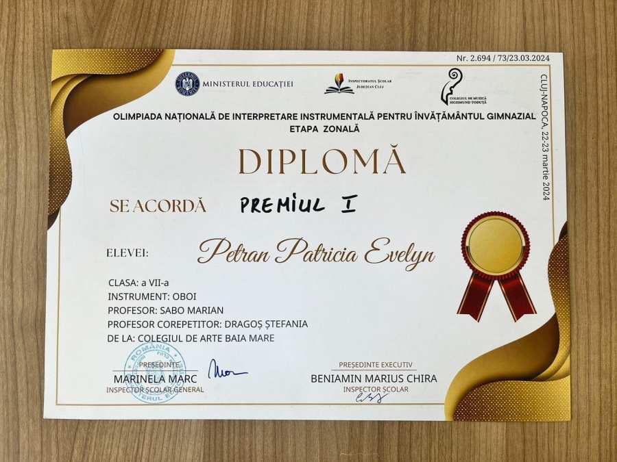 Azi ne mândrim cu rezultatele obținute de elevi la oboi și clarinet, aceștia fiind pregătiți de prof. Marian Sabo: