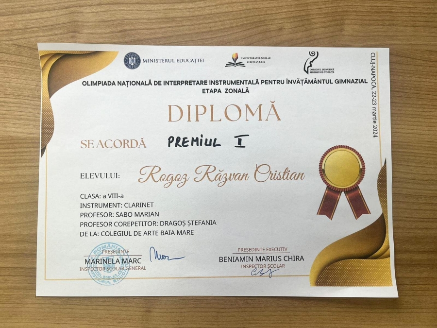 - Rogoz Răzvan, clasa a VIII-a, clarinet, Premiul 2.