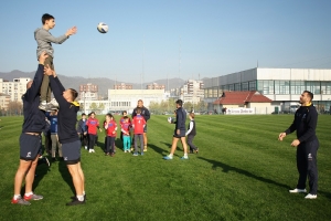 Ieri, pe Arena Zimbrilor au venit peste 120 de copii din mai multe școli din Baia Mare ca să-i întâlnească pe jucătorii naționalei de rugby a României, aflați în cantonament înaintea meciului cu Portugalia. Timp de o oră au exersat pasarea balonului sau au jucat rugby-tag cu Stejarii. S-a lucrat pe mai multe ateliere și grupe, cel mai apreciat moment de micuții școlari fiind ridicatul în tușă, una dintre cele mai spectaculoase faze fixe ale jocului de rugby. La final, copiii au luat autografe de la jucători, s-au fotografiat cu ei și le-au promis că vor veni sâmbătă, 10 noiembrie, în tribunele Arenei Zimbrilor, pentru a-i încuraja.