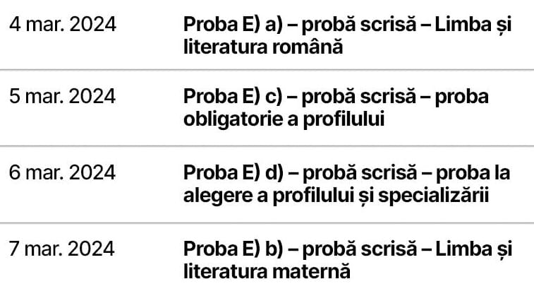 Simularea examenelor naționale din anul școlar 2023 – 2024, organizată la nivel național de Ministerul Educaţiei, continuă în săptămâna 4 – 7 martie, cu probele scrise din cadrul examenului de bacalaureat (pentru elevii claselor a XII-a şi a XIII-a seral/frecvenţă redusă).