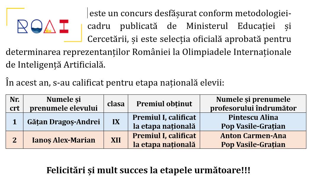 Elevii Colegiului Național Gheorghe Șincai Baia Mare au obținut rezultate remarcabile la Olimpiada de Inteligență Artificială (ROAI), concurs organizat conform metodologiei-cadru a Ministerului Educației și Cercetării, care desemnează oficial reprezentanții României la Olimpiadele Internaționale de Inteligență Artificială.