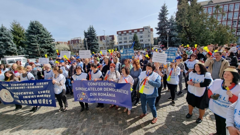În jur de 1.000 de angajați din sistemul de învățământ preuniversitar din județ (personal didactic, didactic auxiliar și nedidactic) participă mâine, 8 iunie, în municipiul Baia Mare, la un marș de protest al tăcerii și al demnității, organizat de Sindicatul Liber din Învățământ Maramureș (SLI MM).