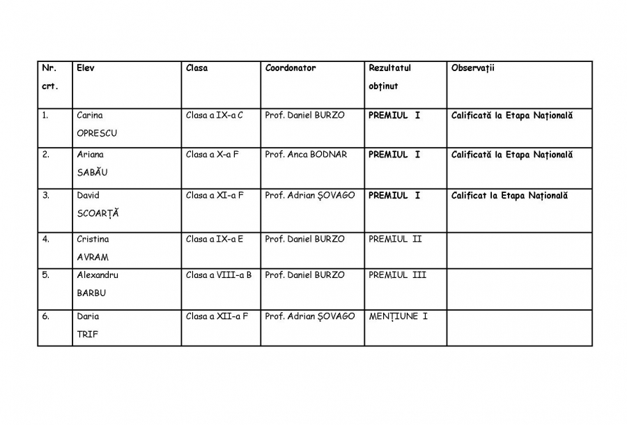 Au participat și elevi de la Colegiul Național „Vasile Lucaciu”, care au obținut rezultate remarcabile și calificări la etapa națională. Aceasta va avea loc în perioada 27 aprilie – 1 mai la Brașov.