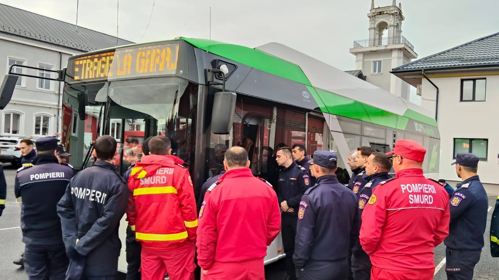 Cu sprijinul societății de transport public local, reprezentanții ISU au avut ocazia să studieze în detaliu unul dintre aceste vehicule nou intrate în flota companiei și utilizate deja în municipiul Baia Mare.