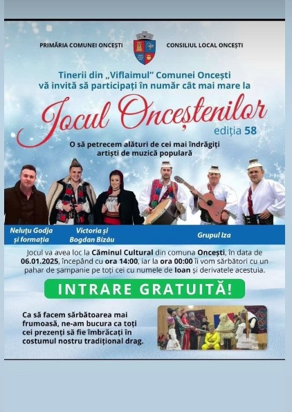 Tinerii din „Viflaimul” comunei Oncești vă invită să participați în număr cât mai mare la „Jocul Onceștenilor”, ediția 58.