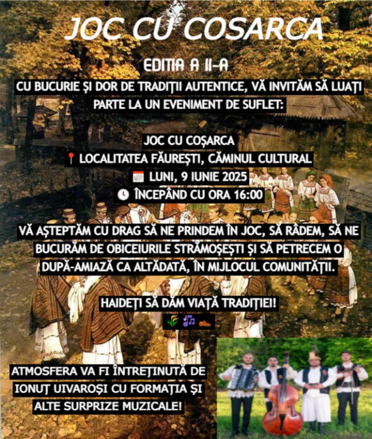 „Cu bucurie și dor de tradiții autentice, vă invităm să luați parte la un eveniment de suflet „Joc cu coșarca”.