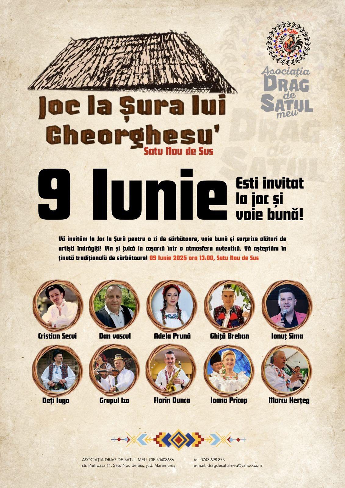 Mâine, 9 iunie, de la ora 13.00, Șura lui Gheorghesu’ din Satu Nou de Sus va găzdui evenimentul „Joc la Șură”.