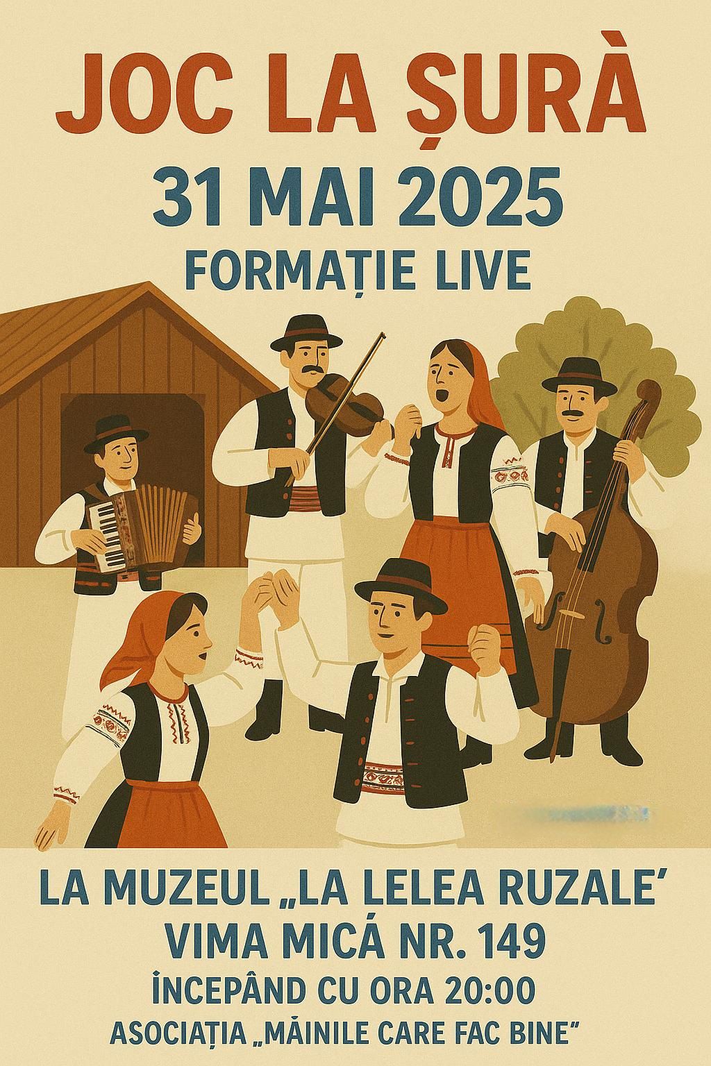 Sâmbătă, 31 mai, de la ora 20.00, la Muzeul „La lelea Ruzale” din Vima Mică (nr. 149) se organizează Joc la șură.