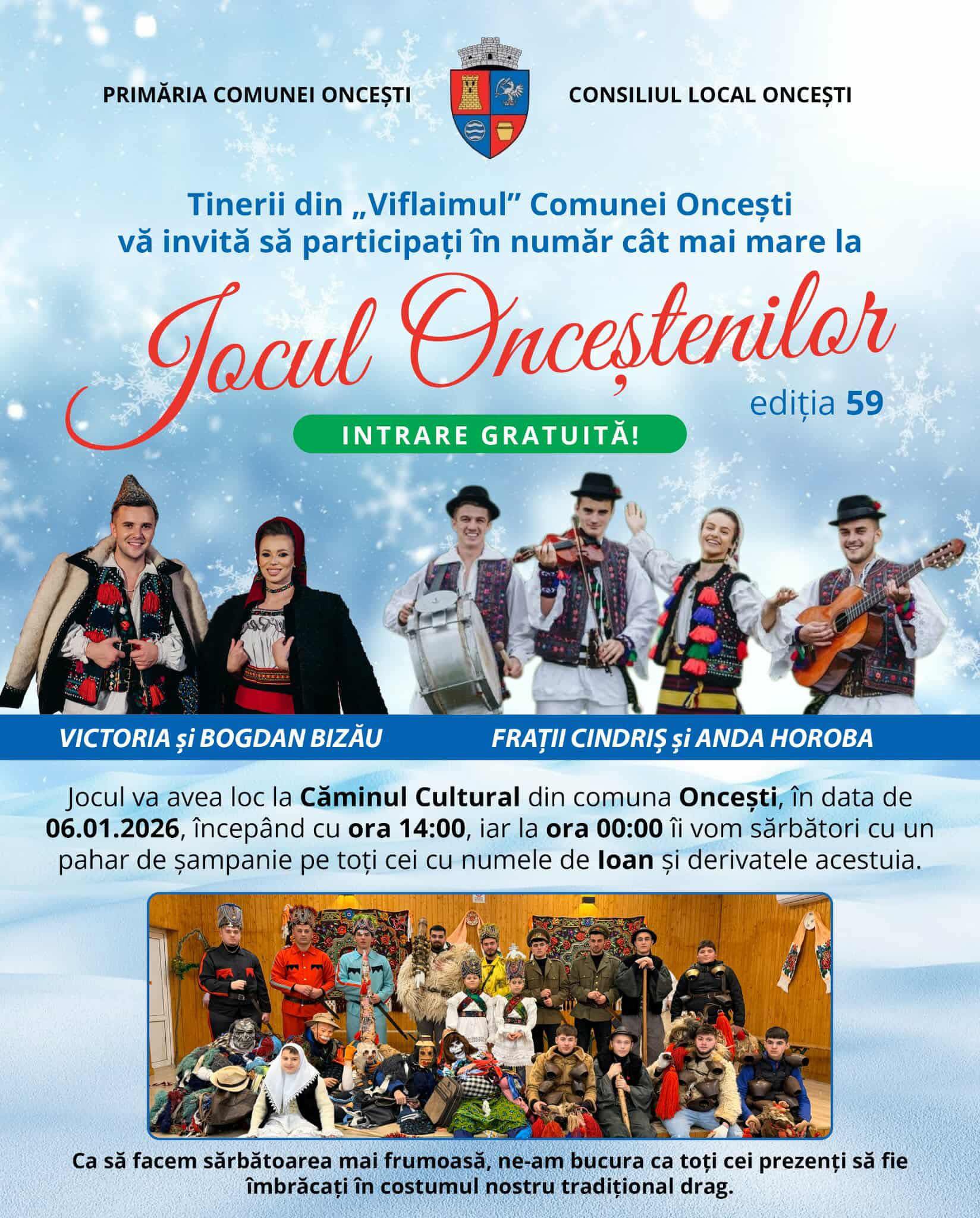 Vă așteptăm cu drag să ne bucurăm împreună de joc, tradiție și voie bună, așa cum se cuvine la început de an, la Oncești!”, transmit organizatorii.